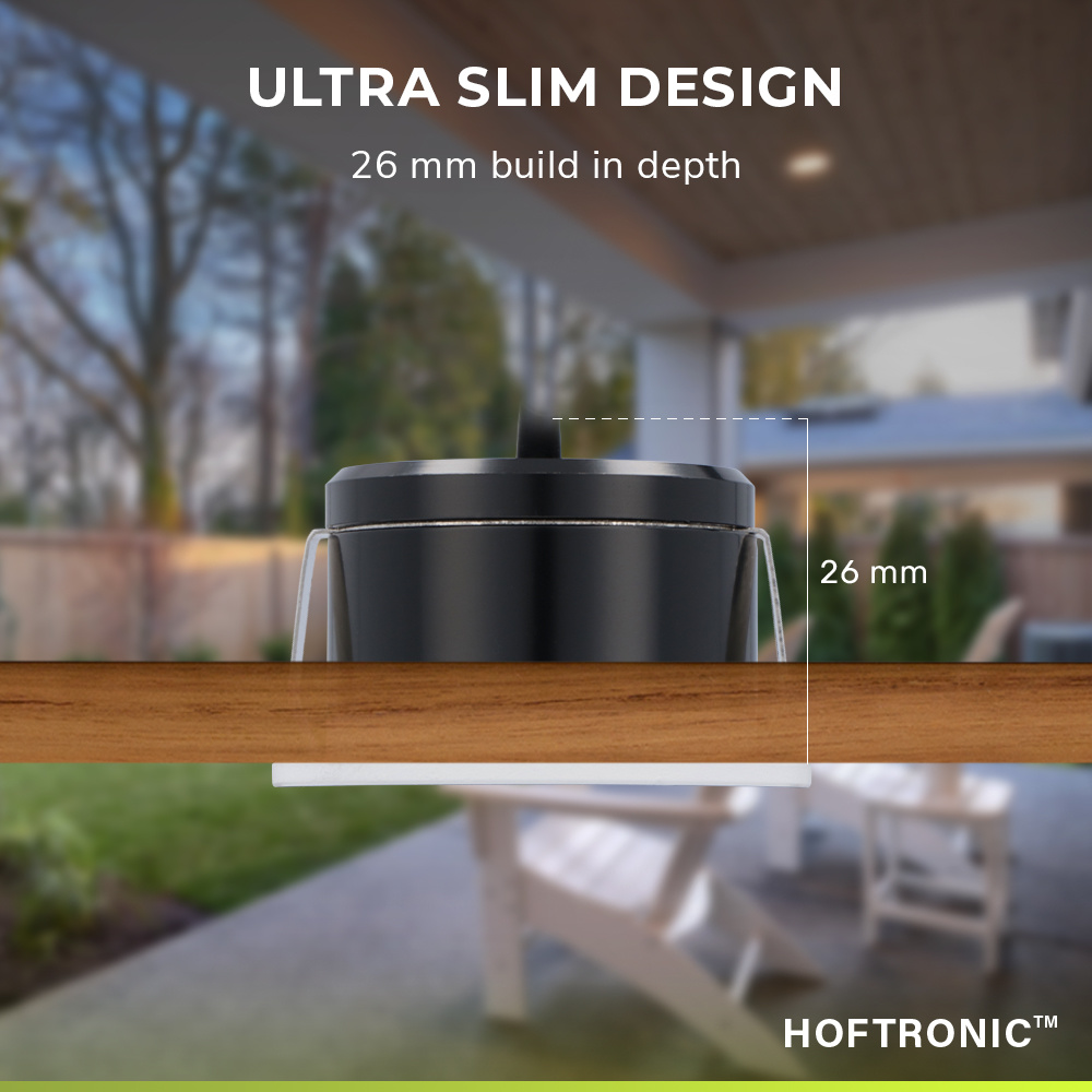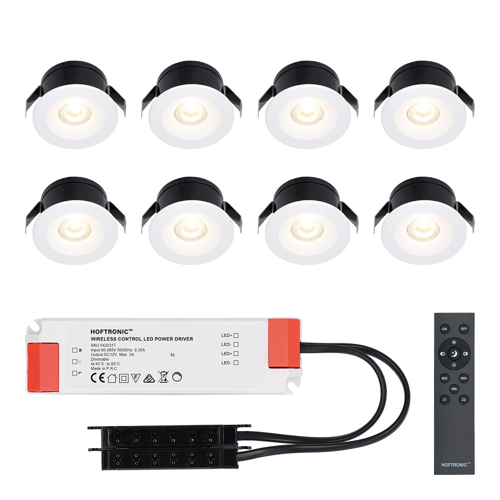 De Hoftronic Cadiz dimbare inbouwspot zijn traploos dimbaar, wat betekent dat je in een vloeiende overgang van 100% naar 0% kunt dimmen, en omgekeerd. De kleurtemperatuur is 2700K, wat staat voor warm wit licht. Er wordt een afstandsbediening bij bezorgd. Zit je lekker in je luie stoel op de veranda, of lig je languit in bad en denk je: de verlichting staat toch iets te fel? Met de afstandsbediening dim je de verlichting regelrecht, en hoef je dus niet op te staan. Ideaal.
