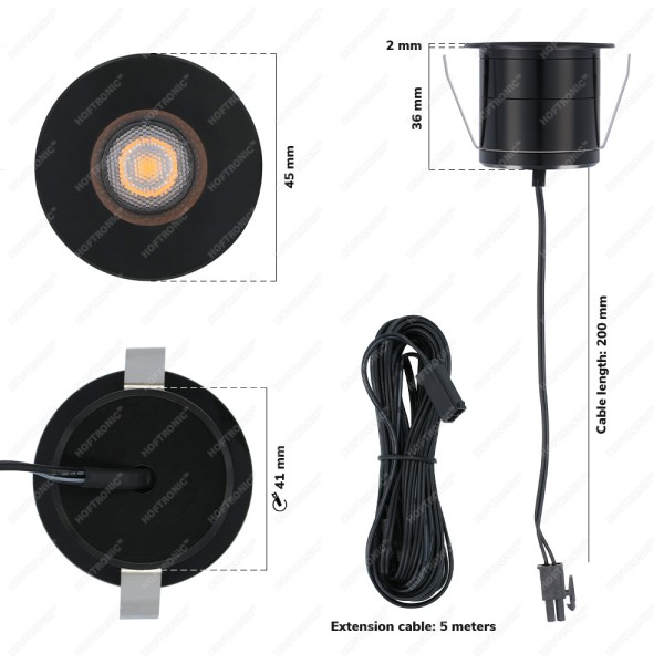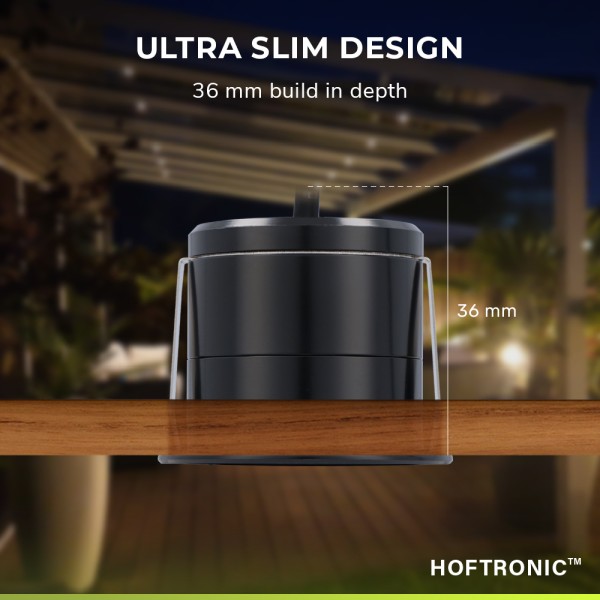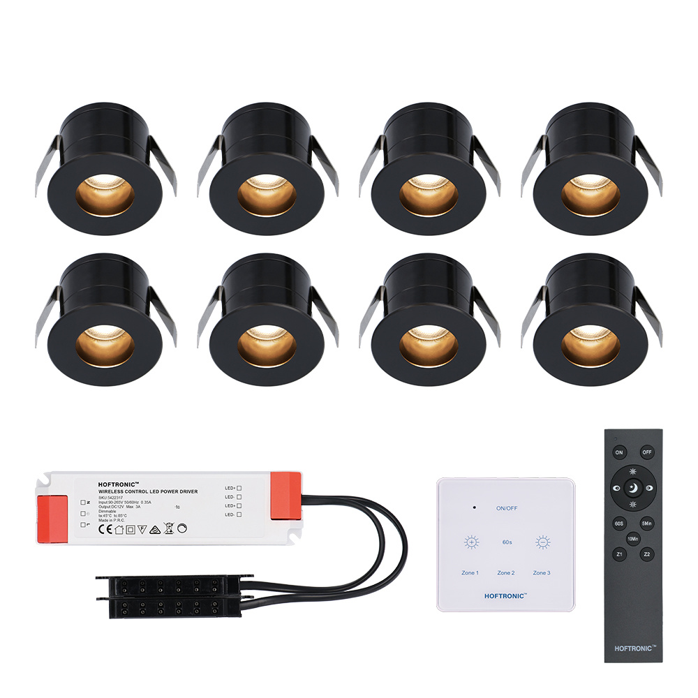 De Hoftronic Olivia dimbare inbouwspot zijn traploos dimbaar, wat betekent dat je in een vloeiende overgang van 100% naar 0% kunt dimmen, en omgekeerd. De kleurtemperatuur is 2700K, wat staat voor warm wit licht. Er wordt een afstandsbediening bij bezorgd. Zit je heerlijk in je luie stoel op de veranda, of lig je languit in bad en denk je: de verlichting staat toch iets te fel? Met de afstandsbediening dim je de verlichting onmiddelijk, en hoef je dus niet op te staan. Ideaal.