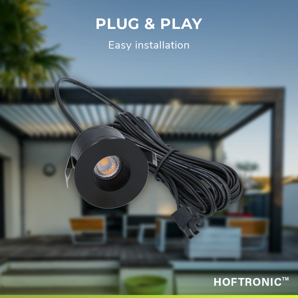 De Olivia is probleemloos te installeren door het plug and play systeem. Je hebt geen hulp van een elektricien nodig! De meegeleverde 12-poort verdeler is voorzien van 12 aansluitingen waarop de inbouwspots eenvoudig en gereedschapsloos kunnen worden ingestoken, dit maakt het alsmaar mogelijk om de bestaande set moeiteloos uit te breiden. De spotjes kunnen hierna met de stekkers worden ingestoken en comfortabel op de gewenste plek geplaatst worden, dankzij de klemmen die aanwezig zijn op de spotjes.
