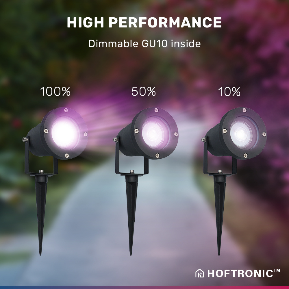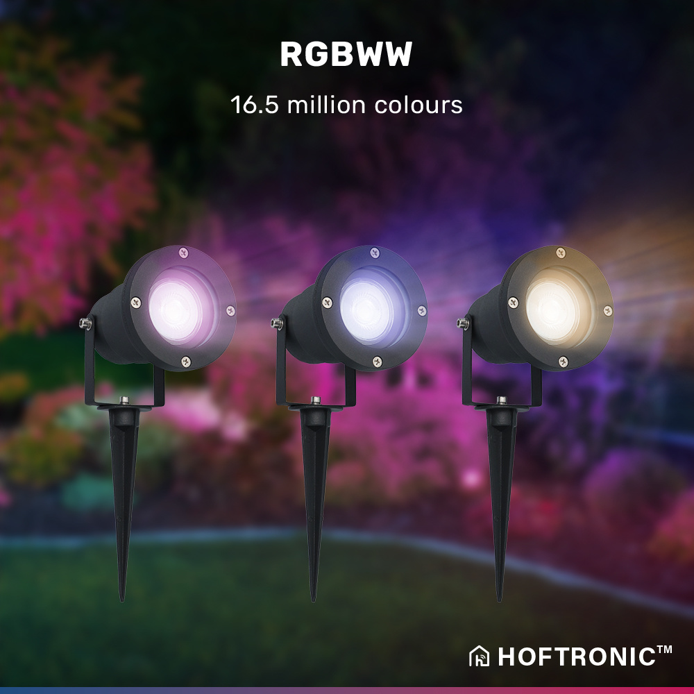 Nu kan je je tuinverlichting bedienen met Amazon Alexa, Google Assistant, voice control en ook via de Hoftronic Smart app. Hierdoor ben je mega flexibel om de verlichting voor elke situatie in te stellen wat betreft helderheid en lichtkleur. Met de smart functies kan je meer dan 16 miljoen lichtkleuren instellen + kleurtemperaturen van 2700K – 6500K, dimmen, aan/uit zetten, een timer op de lamp zetten, scenes en nog meer!