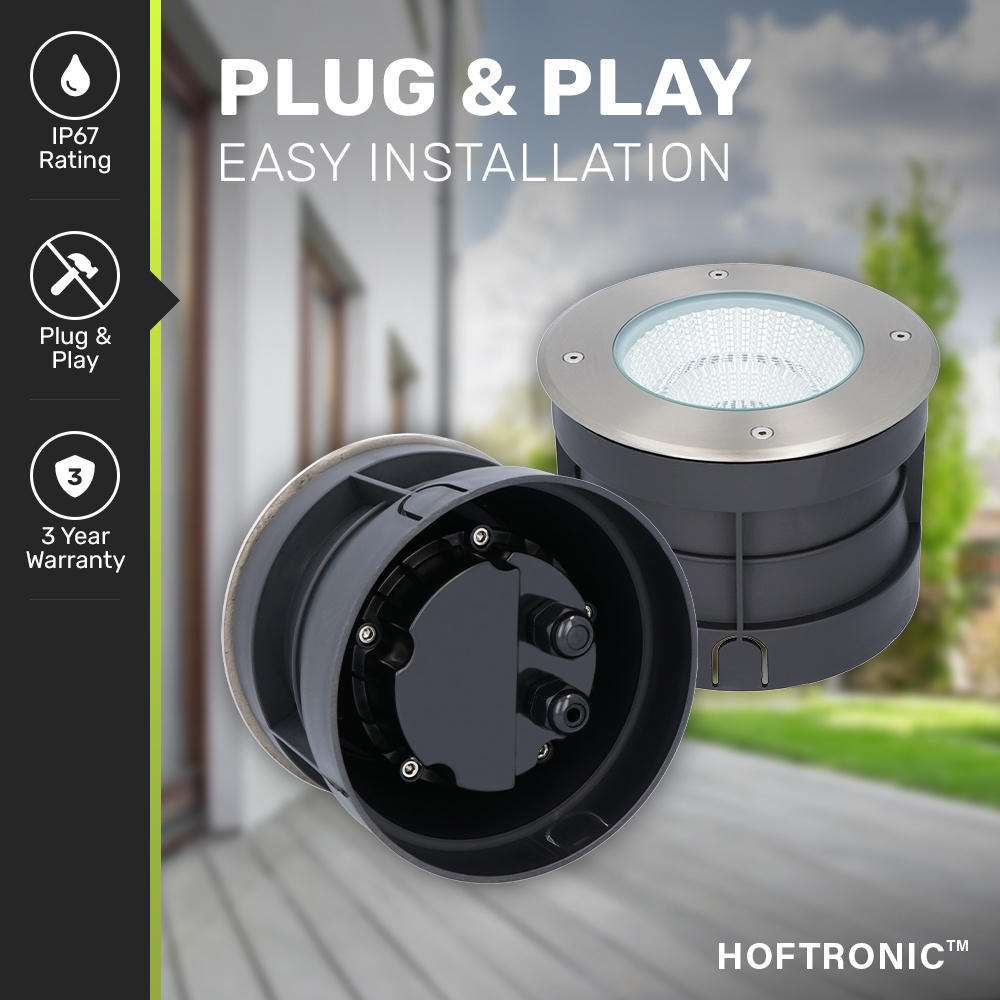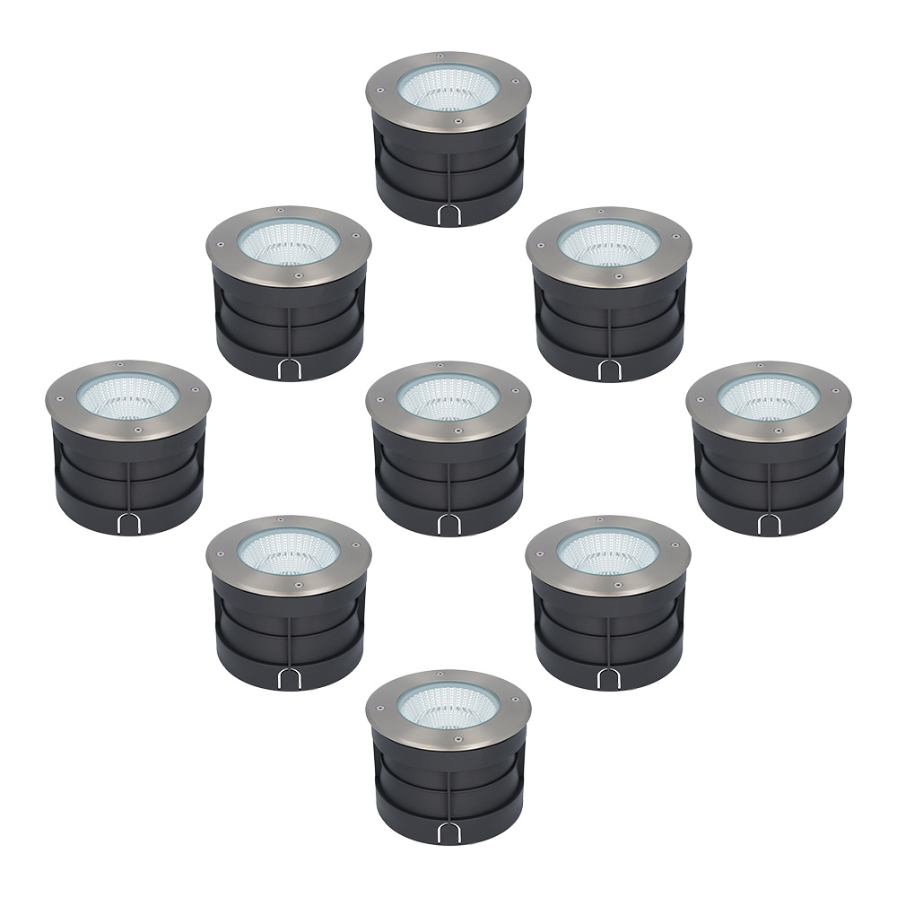 Deze grondspots schijnen een zeer comfortabel warm wit licht. Ideaal voor het uitlichten van een boom of voor het gezellig verlichten van je oprit, gevel, tuin en terras. Door het RVS uiterlijk en zijn ronde bouw hoort bij de grondspot in elke tuin.