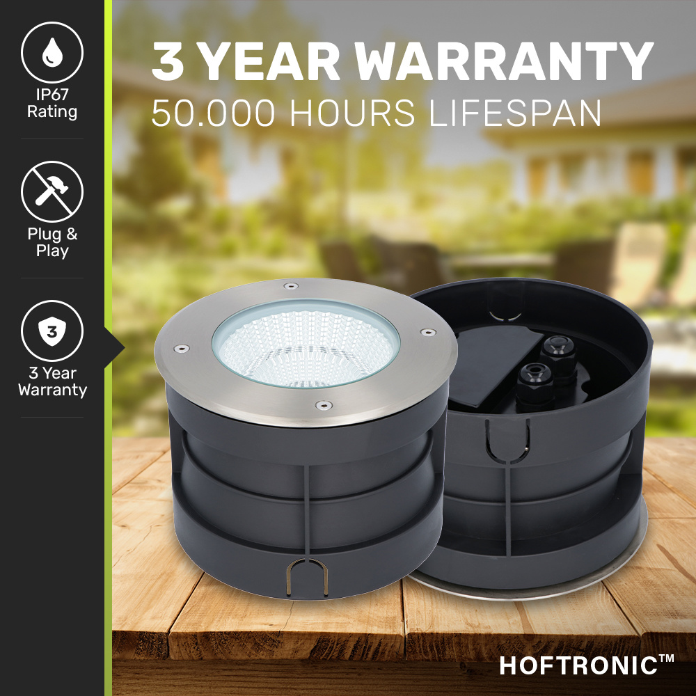 Ben je op zoek naar hedendaagse sfeerverlichting voor je tuin of oprit die jarenlang meegaat? Dan is de Sonnie LED grondspot voor jou! Deze grondlampen zijn gemaakt van het mooiste kwaliteitsmateriaal, zijn IP67 waterdicht en hebben een ingebouwde COB LED lichtbron. Hierdoor ontvang je bij aankoop van deze grondspots tot wel 3 jaar garantie.