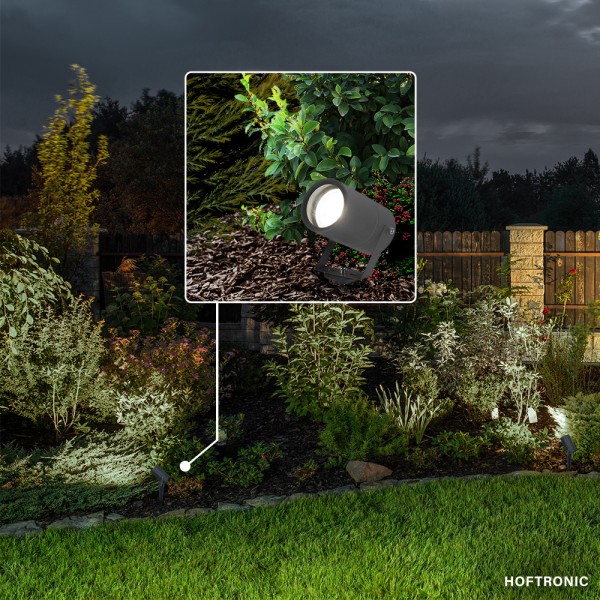 Bij deze set Spikeys zit al een lichtbron. Zo kun je op de dag dat je de Spikey binnen krijgt onmiddelijk aan de slag met de montage ervan. Uiteraard kun je deze lichtbron eenvoudig vervangen via de schroefdraad in de tuinspot. Hierdoor hoef je de gemonteerde prikspot niet van de muur of uit de aarde te trekken. Een groot voordeel hiervan is landelijk dat je niet de hele lamp hoeft te substitueren bij een misschien defect. Een ander groot voordeel is dat je de Spikey tevens kunt voorzien van slimme verlichting, zoals Philips Hue en de Hoftronic smart spotjes.