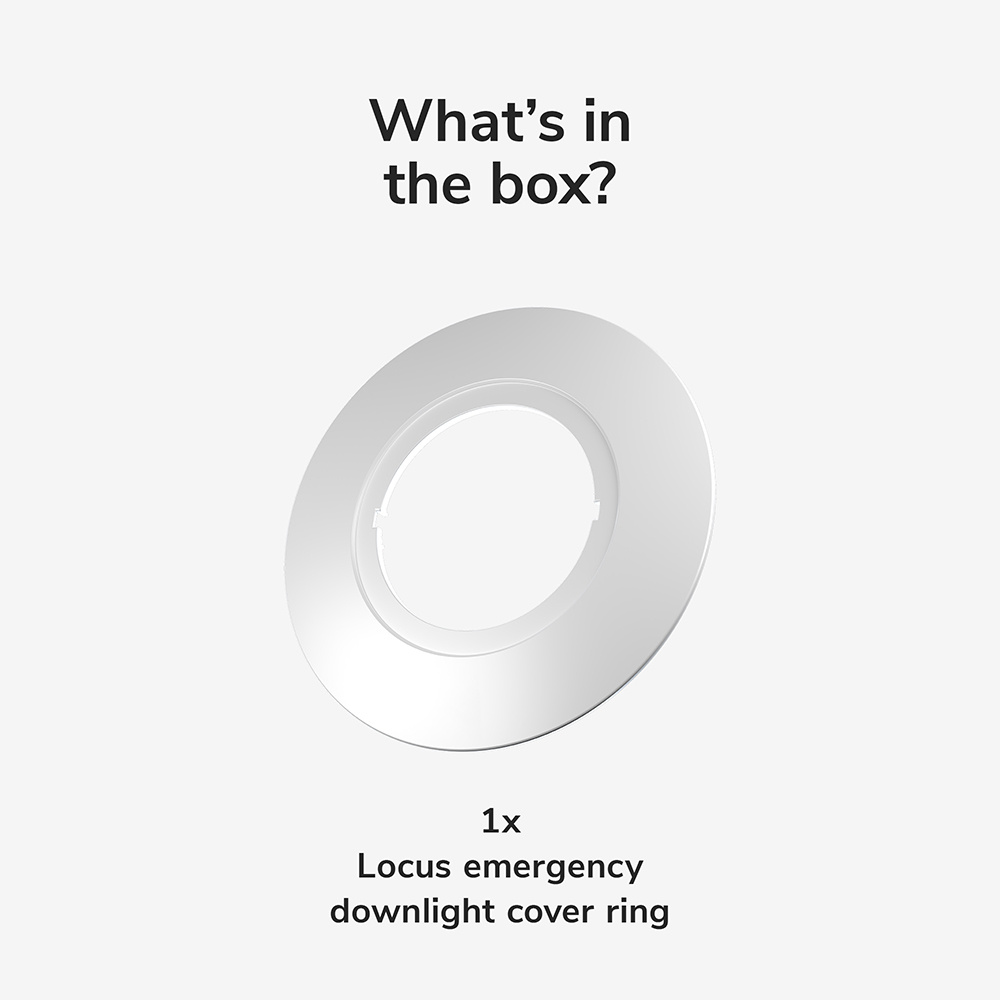 Deze afdekring is speciaal gemaakt voor de Locus downlight noodverlichting (apart te bestellen). Standaard kun je de Locus als inbouwspot in het plafond of de muur monteren met een zaagmaat van Ø92 millimeter. Met deze afdekring is het mogelijk om grotere uitsparingen tot Ø140 mm mooi af te dekken. Dit is erg handzaam wanneer je de Locus downlight wilt monteren waar eerder een inbouwspot met een grotere uitsparing zat. De afdekring heeft een diameter van 170 mm en is gemaakt uit behoorlijk polycarbonaat. De afdekring is tevens verkrijgbaar in het zwart, passend bij de zwarte Locus downlight.