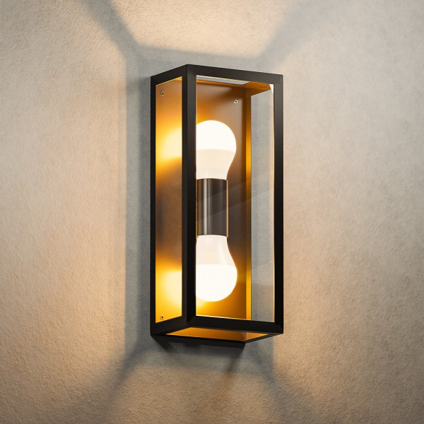 HOFTRONIC Alma 2-zijdige LED wandlamp – Incl. 2x E27 lamp met schemersensor – 3000K warm wit – IP44 ideaal als buitenverlichting – Zwart