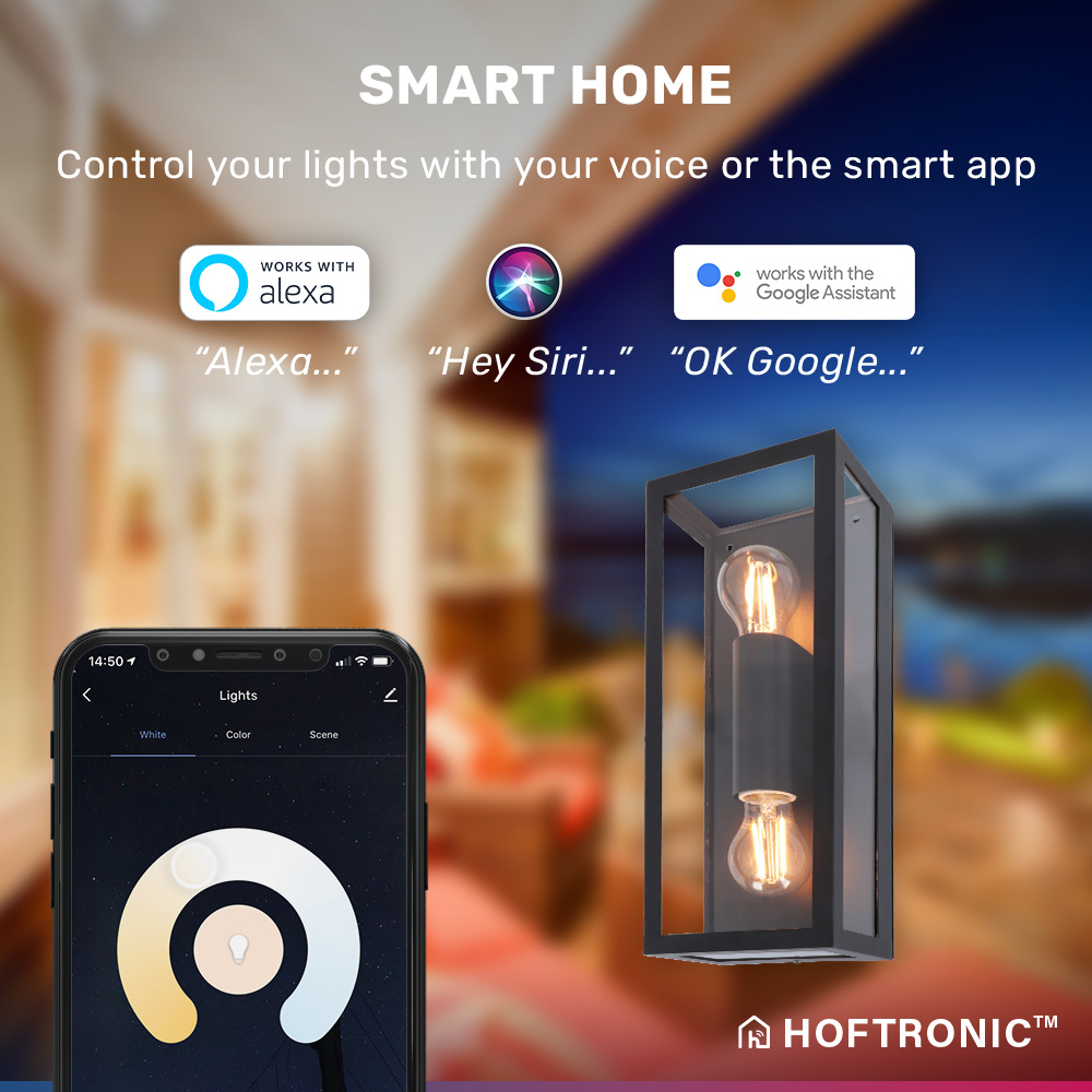 Koppel de smart gloeilampen aan de gratis HOFTRONIC Smart app en je krijgt oprijlaan tot tientallen smart functies. Zo haal je het maximale uit je smart verlichting. Een bondige greep uit deze smart functies zijn: