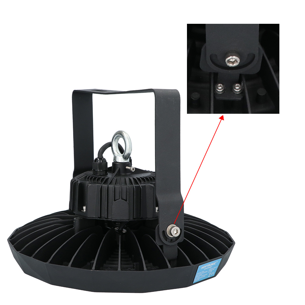 • Stevig en stevig materiaal: De bevestigingsbeugel is voorzien van een potig en stevig aluminium materiaal, om die reden is je High Bay extra stevig bevestigd aan je plafond.