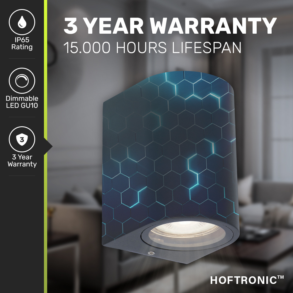 HOFTRONIC Alvin dimbare LED wandlamp – 4000K neutraal wit – GU10 – 5 Watt – Wandspot – Zwart – IP65 voor binnen en buiten