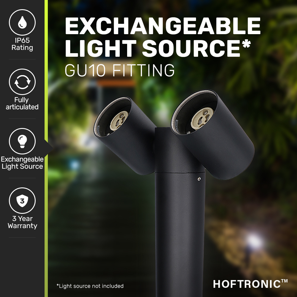 HOFTRONIC Aspen double LED sokkellamp 45cm – Kantelbaar – GU10 fittingen – IP65 waterdicht – Zwart – Buitenlamp geschikt als padverlichting