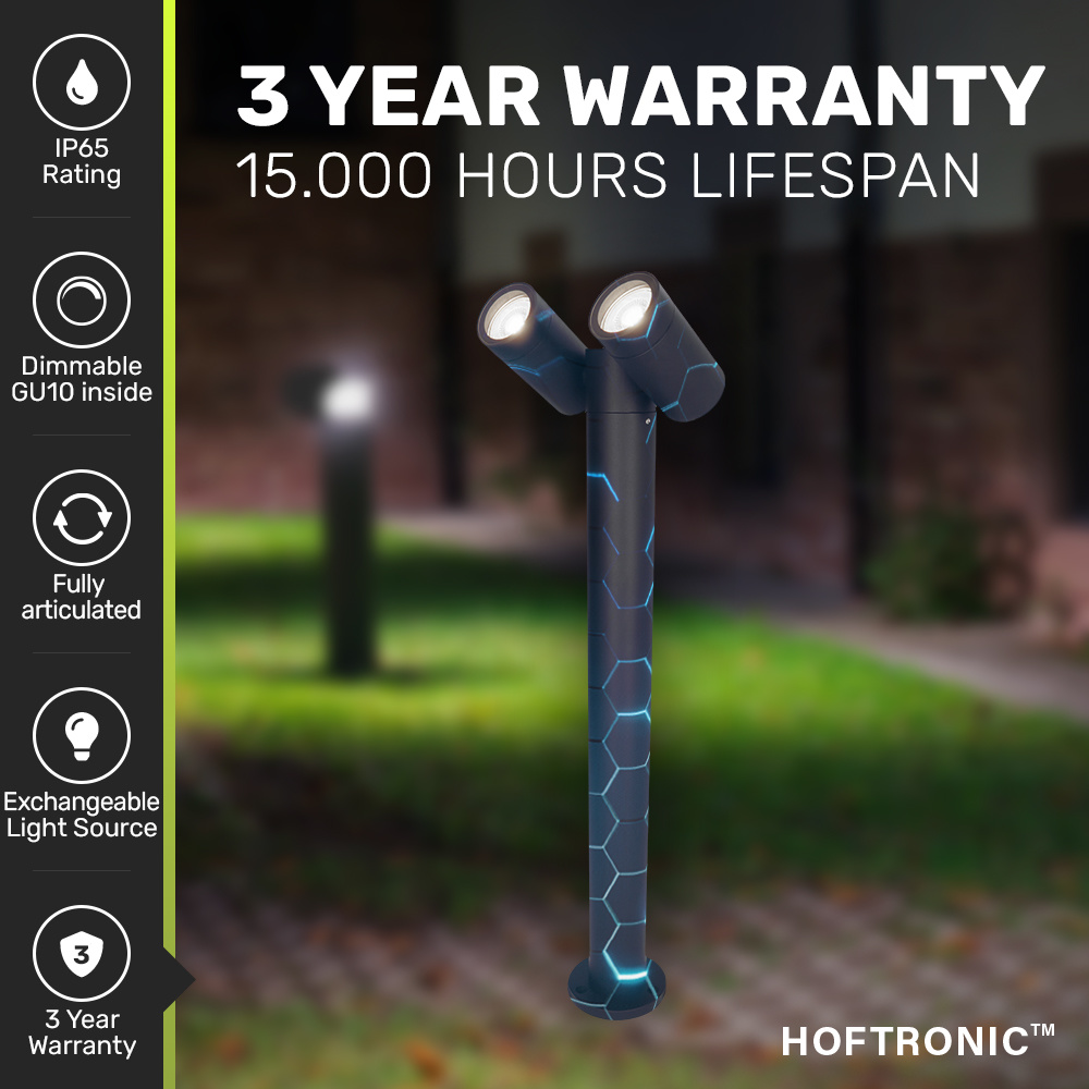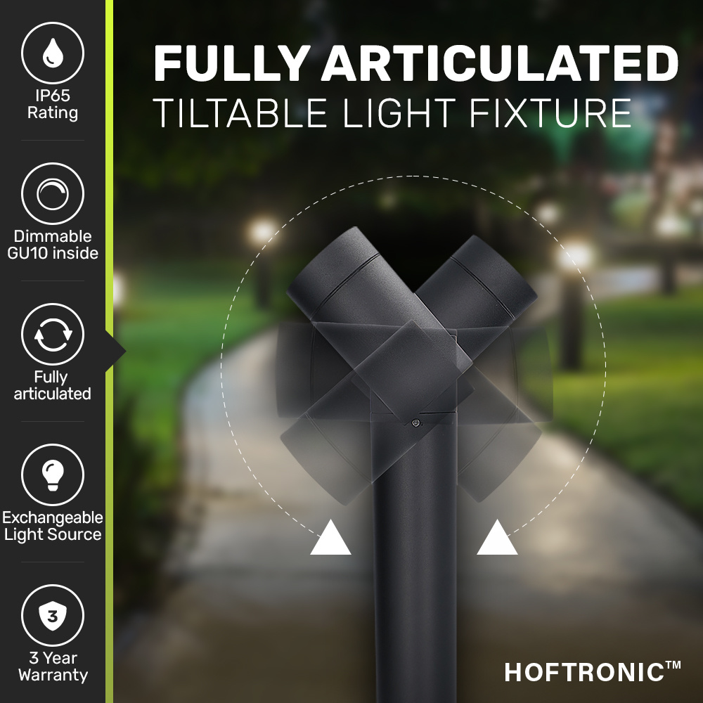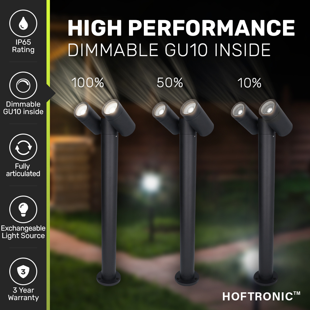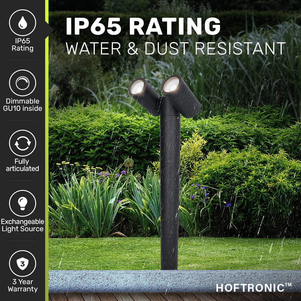 HOFTRONIC Aspen double LED sokkellamp 60cm – Kantelbaar – incl. 2x GU10 – 6000K Daglicht wit- IP65- Zwart – Buitenlamp geschikt als padverlichting