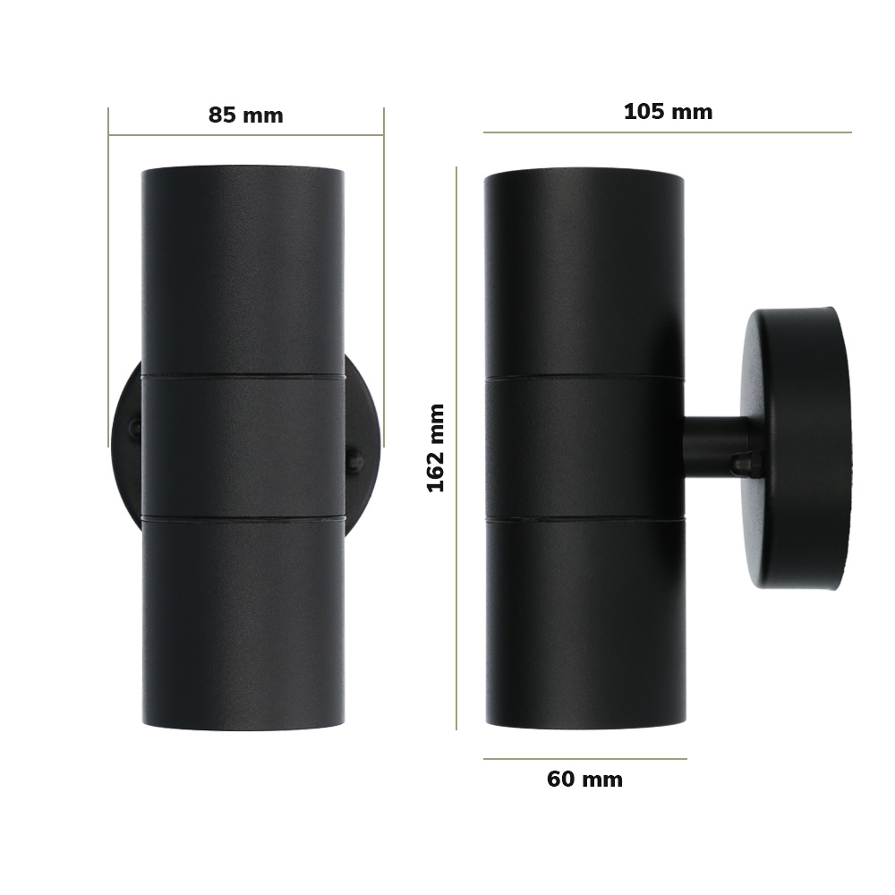 Ben je opzoek naar een wandlamp voor buiten welke een moderne uitstraling heeft. Dan is deze wandlamp precies wat je zoekt! Door zijn elegante cilindervorm is deze buitenverlichting een echte eye-catcher. Met de twee bijbehorende dimbare GU10 LED spots kun je nu zelf comfortabel de sfeer vaststellen op de juiste dimstand.
