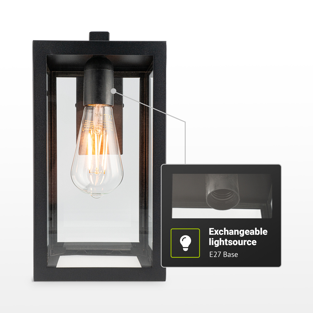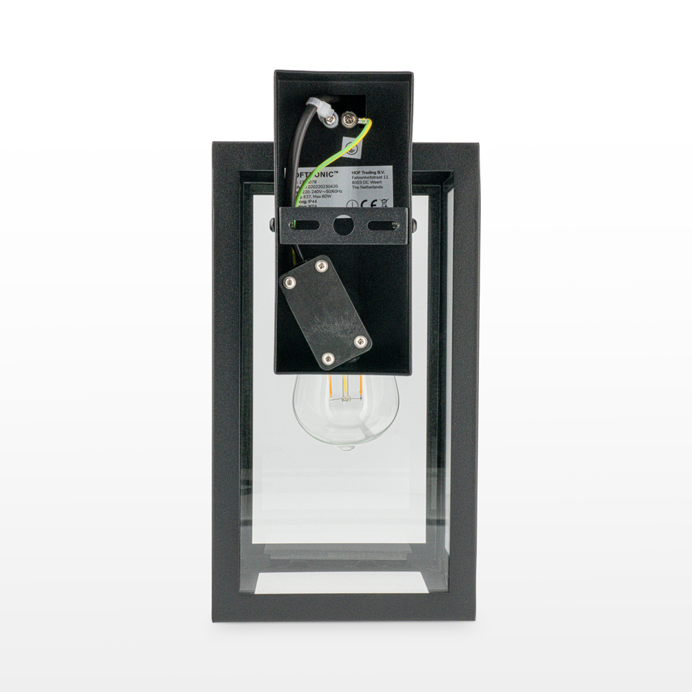 De Brooks wandlantaarn is voorzien van een E27 fitting, standaard wordt geen lichtbron bij deze wand mee bezorgd. Het fijne van een E27 fitting in deze wandlamp is dat je dus continu vrij bent om je lichtbron te verwisselen. Mocht je in de toekomst een andere lichtkleur lamp in de lamp willen installeren of is de lichtbron defect? Dan kun je deze dus heel gemakkelijk verwisselen voor een kersverse lichtbron.