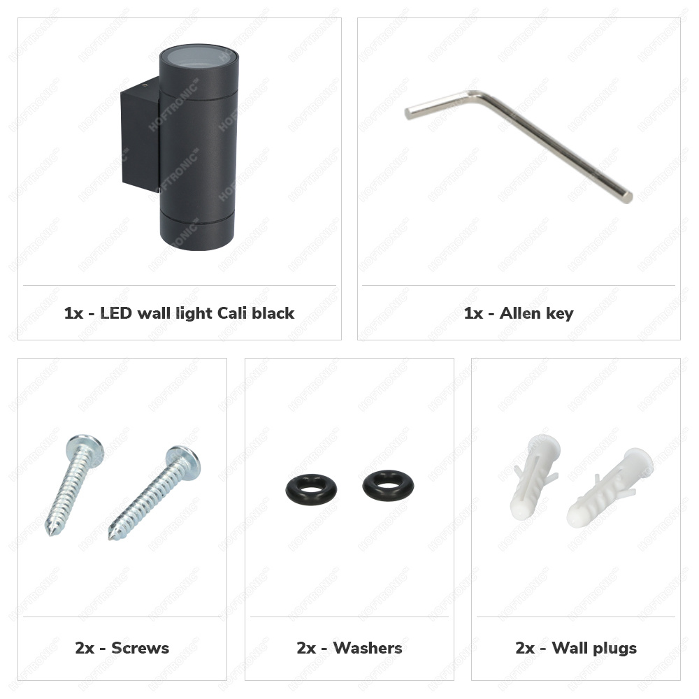 De Cali is een moderne LED wandlamp met een Up&Down light. Wordt niet standaard gebracht met GU10 spots, die kun je er zelf naar keuzemogelijkheid aan toevoegen. Komt mede met schroeven en pluggen om de montage nog handiger te maken.