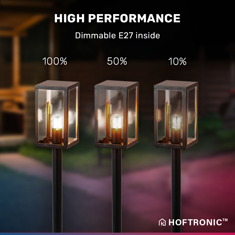 Ook de lichtbron is veilig door de glazen omkasting. De tuinsokkel is maar liefst 100 cm hoog, 14,5 cm lang en 14,5 cm uiteenlopend. Combineer deze tuinsokkel met een gezellige filament lichtbron en genoeg van een warme, ideale maar toch eigentijdse sfeer.