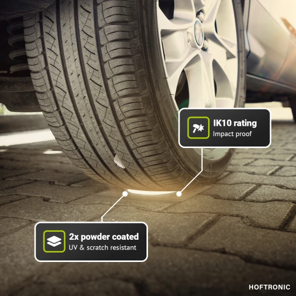 Wil je keurige grondspots met klasse voor je oprit? Dan is de Cody buitenspot buitengewoon goed. Je hoeft bij deze spot namelijk niet op te passen wanneer je met je auto de poort op komt rijden. De Cody is gebouwd met IK10 weerstandsklasse waardoor je er met een auto afgezien van problemen overheen kunt rijden. Let er wel op dat je je auto er niet precies bovenop laat staan. Dat vindt Cody minder prima en kan het glas breken. De spotjes hebben een optimale overrijdbare draagkracht van 2000 kg.