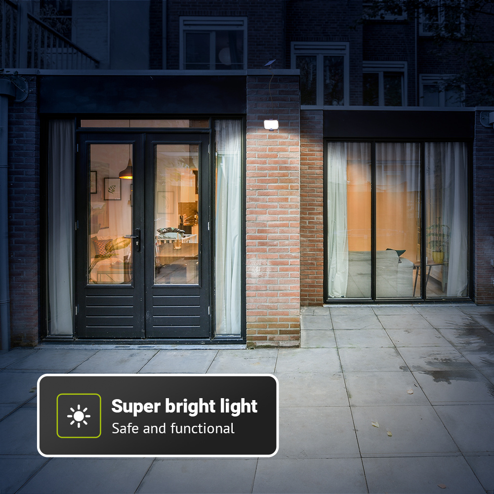 Daarnaast heeft de buiten wandlamp 120 LED’s die in totaal een lichtsterkte van 600 lumen afgeven.