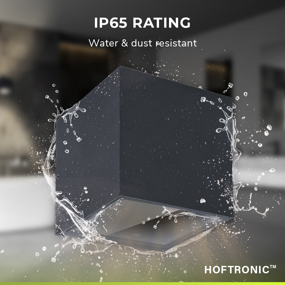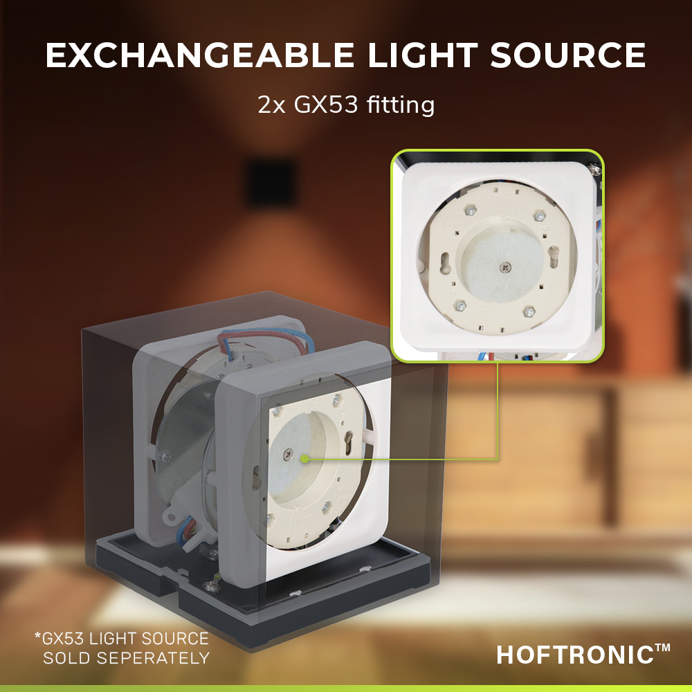 HOFTRONIC Cuba LED wandlamp – voor 2 GX53 spots – IP65 waterdicht voor binnen en buiten – Max. 2x 9 watt – Vierkant – Geschikt voor badkamer en tuin – Up and down light – Zwart
