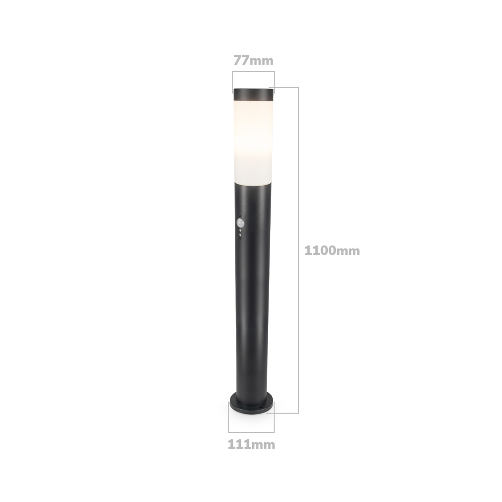 Dally is een eigentijdse zwarte sokkellamp die zeer geschikt is als verlichting voor de tuin en looppaden. De staande buitenverlichting is comfortabel te installeren met de meegeleverde montagematerialen en onmiddelijk aan te sluiten op 230V Netstroom. De looppadverlichting is IP44 waterdicht. Dit houdt in dat een regenbui geen probleem is voor Dally. Zorg er wel voor dat de sokkellamp op een drainerende ondergrond bevestigd wordt zodat ze niet in een vijver water kan blijven staan. Dit kan kortsluiting veroorzaken. Deze Dally komt met een bewegingssensor en schemerschakelaar. Deze zijn naar wens in te stellen. De sensoren zijn niet los van elkaar te gebruiken.