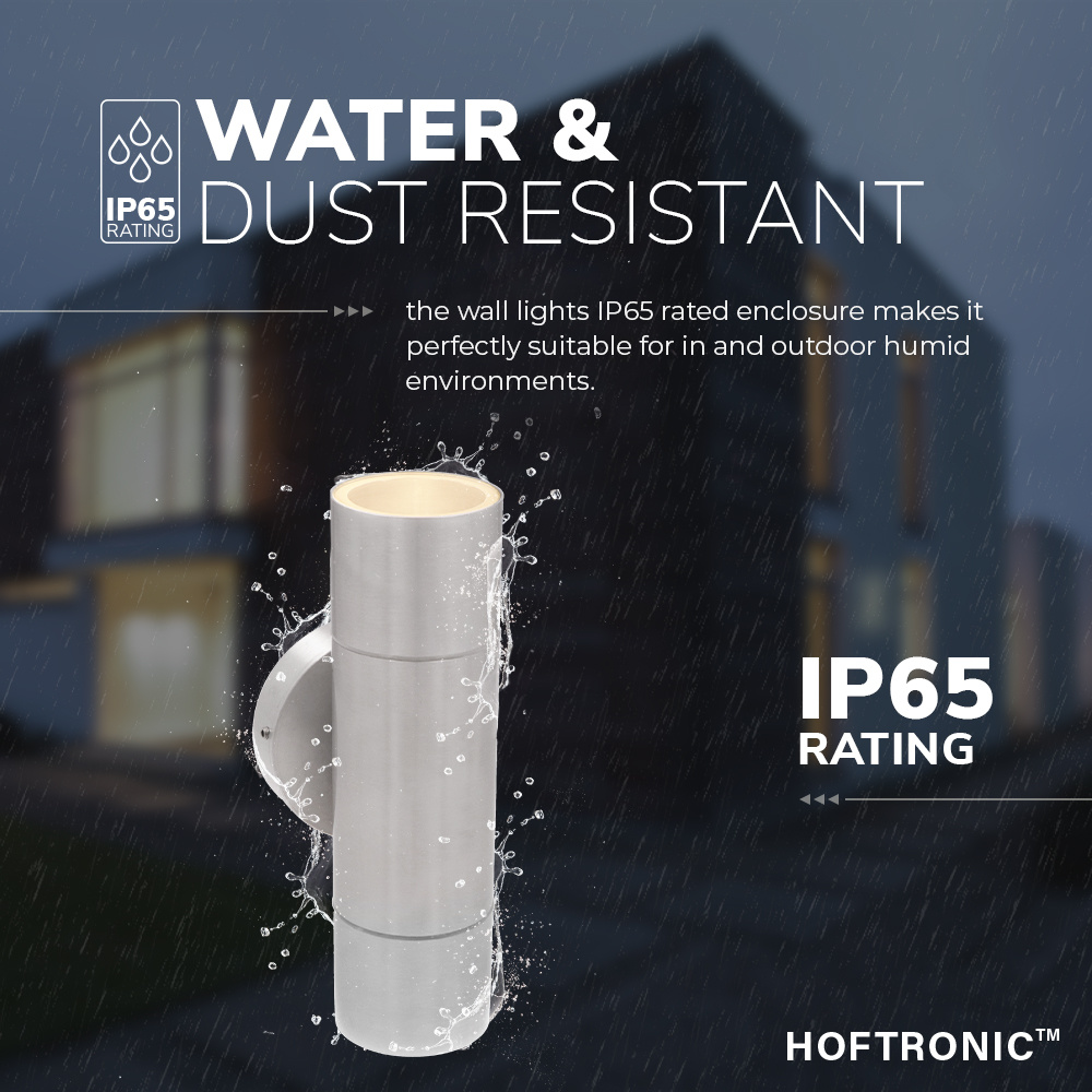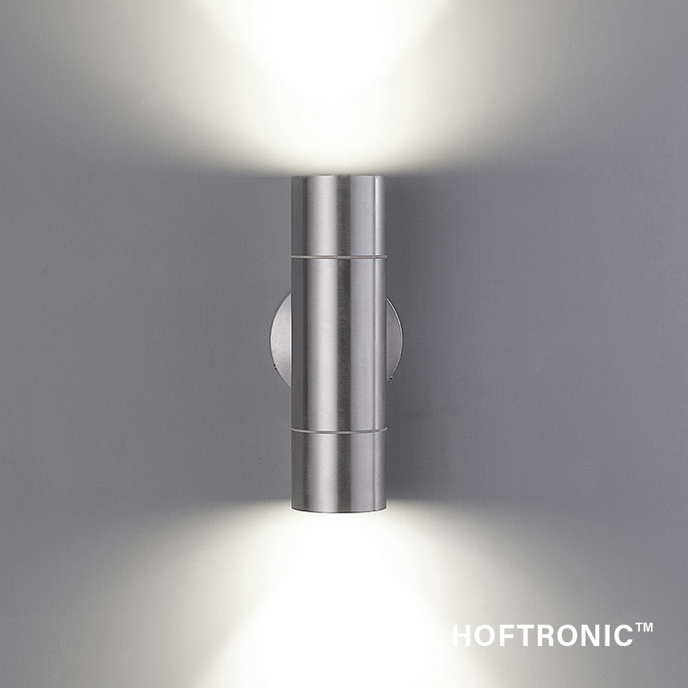 HOFTRONIC Dax LED dimbare wandlamp – Tweezijdig Up & Down – Daglicht wit 6000K – incl. 2x GU10 spots – IP65 voor binnen- en buitengebruik – RVS