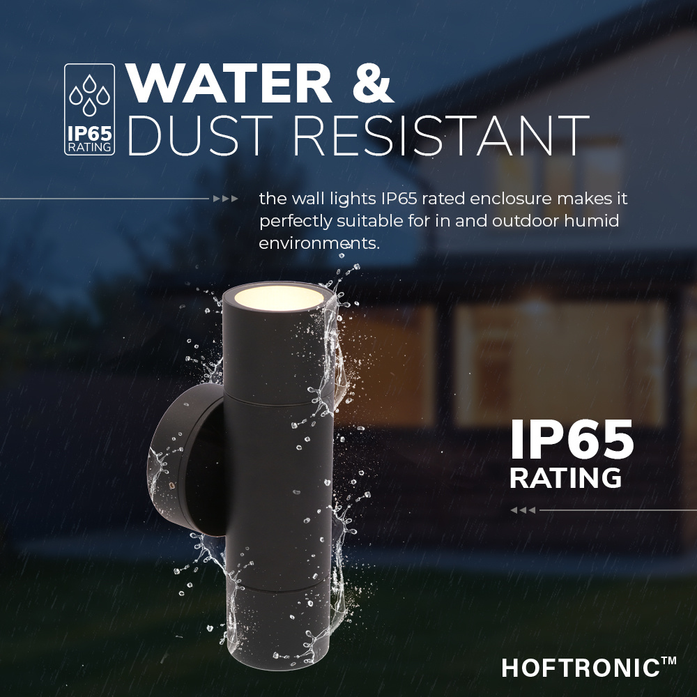 Ben je opzoek naar een hedendaagse wandlamp voor aan je schutting, wand of onder je overkapping? Dan is deze muurlamp nauwkeurig wat je zoekt! Door zijn elegante cilindervorm is deze buitenverlichting een echte eye-catcher. De modieuze Up & Down buitenlamp zorgt voor een éxtra sfeervolle buitenverlichting door het bedien van twee GU10 spots in beide richtingen. Door de beschermingsklasse IP65 is de Dax LED muurlamp buitengewoon beschut tegen alle weersomstandigheden, waardoor je de Dax LED muurverlichting zorgeloos buiten kunt hangen.