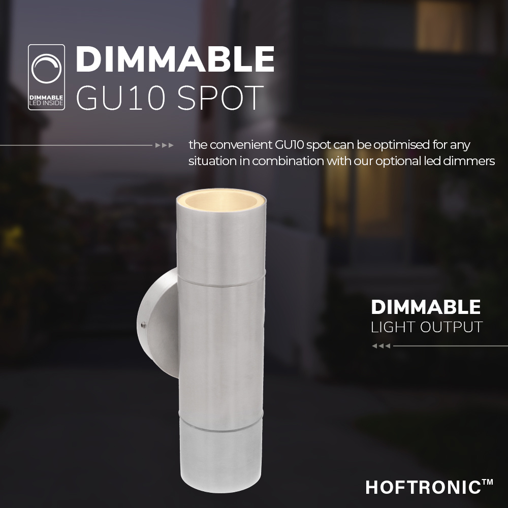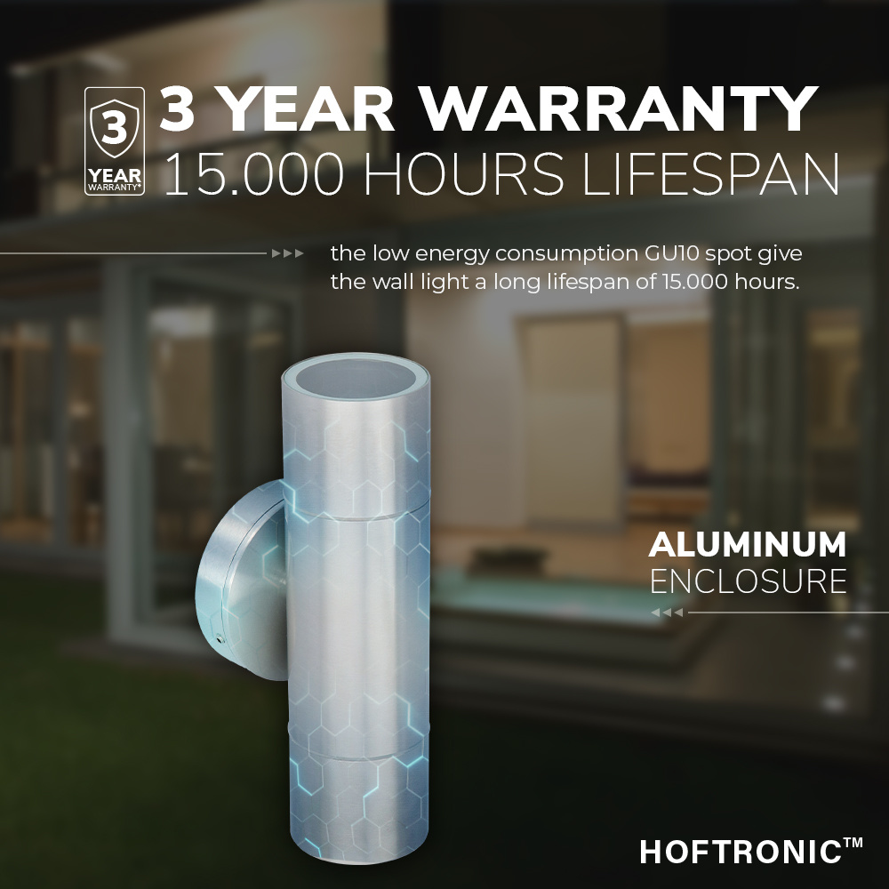 Ben je opzoek naar een hedendaagse wandlamp voor aan je schutting, wand of onder je overkapping? Dan is deze muurlamp precies wat je zoekt! Door zijn elegante cilindervorm is deze buitenlamp een echte must-have. De trendy Up & Down buitenverlichting zorgt voor een éxtra huiselijke buitenverlichting door het bedien van twee neutraal wit gekleurde GU10 spots in beide richtingen. Door de beschermingsklasse IP65 is de Dax LED muurlamp ontzettend beschermd tegen alle weersomstandigheden, waardoor je de Dax LED muurverlichting zorgeloos buiten kunt hangen.
