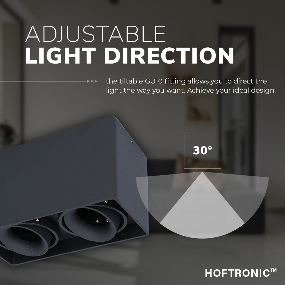 Het gaat hier enkel om het armatuur, de GU10 lichtbron is niet bijgeleverd. Deze is wel heel eenvoudig te installeren en te afwisselen en dat heeft twee voordelen. Ten eerste kun je na aankoop altijd nog switchen van lichttemperatuur. Zo maak je van een praktische opbouwspot probleemloos sfeerverlichting en andersom. Ten tweede wordt de levensduur van de lamp verlengd, doordat je geen nieuwe opbouwspot hoeft aan te schaffen zodra de lichtbron het begeven heeft.