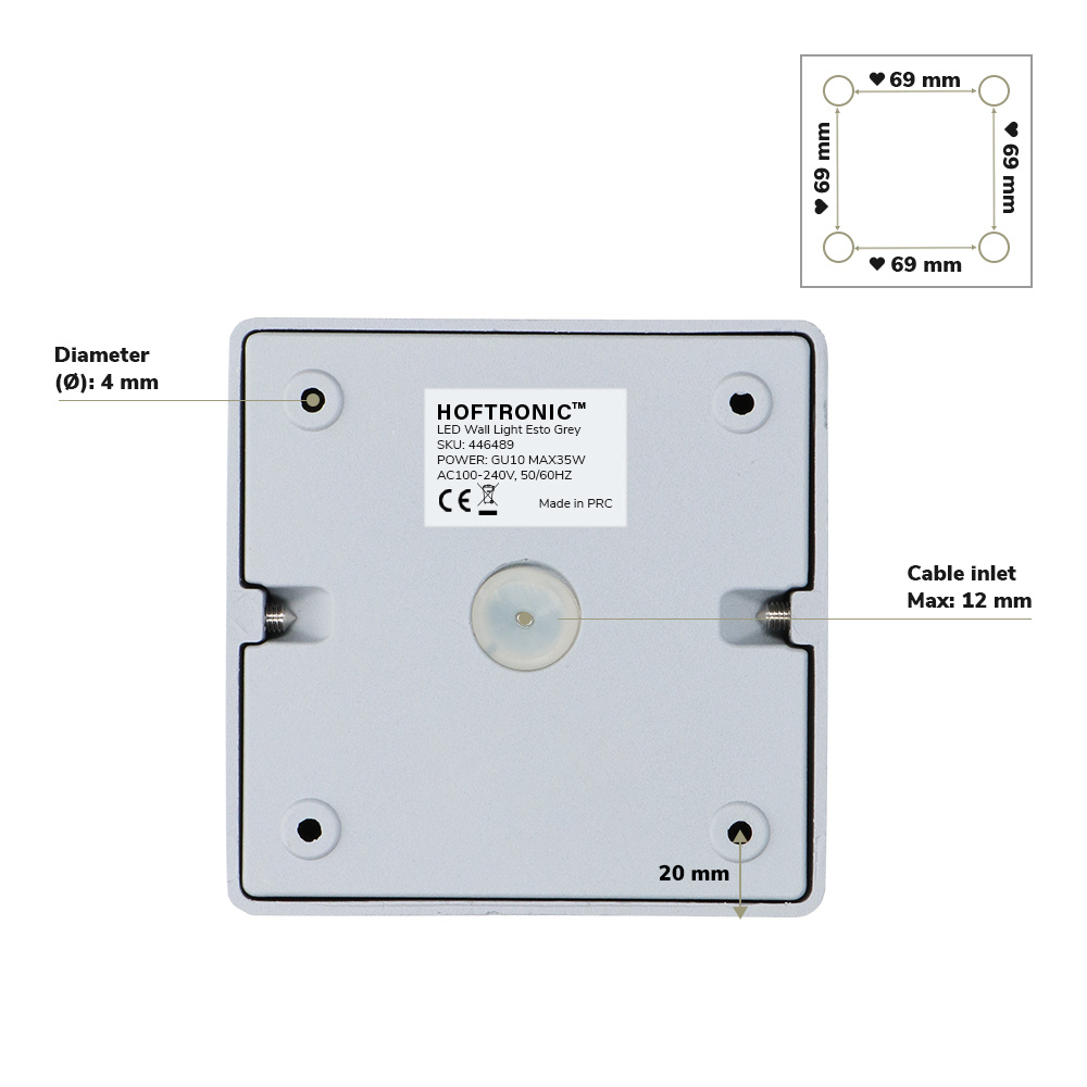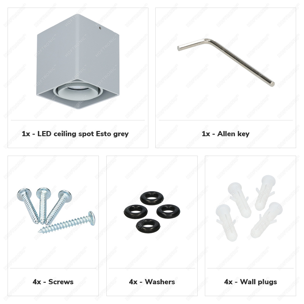 De Esto plafond opbouwspot is functioneel te installeren door meegeleverde montagemateriaal. Door de formaten van 95 x 95 x 105 millimeter. De plafond opbouwspot heeft geen transformator nodig, je kan deze rechtstreeks op het netstroom aansluiten van 100-240V AC. Hou rekening met de IP20 waarde dat je deze Opbouwspot plafond alleen in droge plekken kan installeren, het product is niet geschikt voor natte ruimtes.