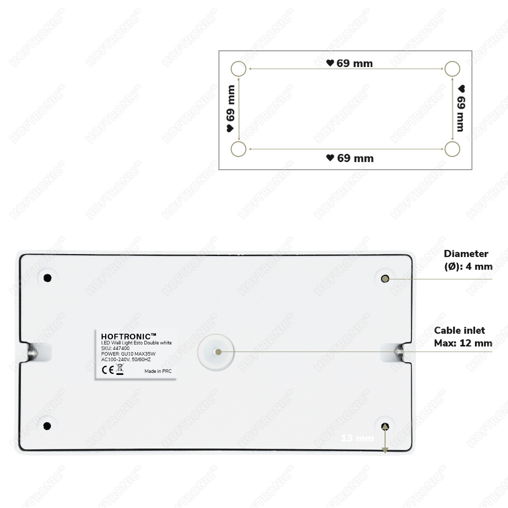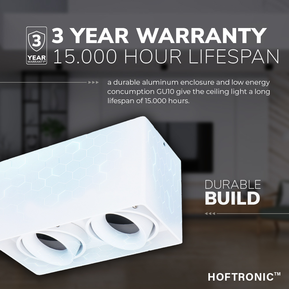 De lichtbron in het armatuur is vervangbaar met een GU10 LED lamp. Standaard 2 dimbare GU10 LED spots meegeleverd. Met een lichtopbrengst van 400 lumen per spot heb je nu 800 lumen totale lichtopbrengst.