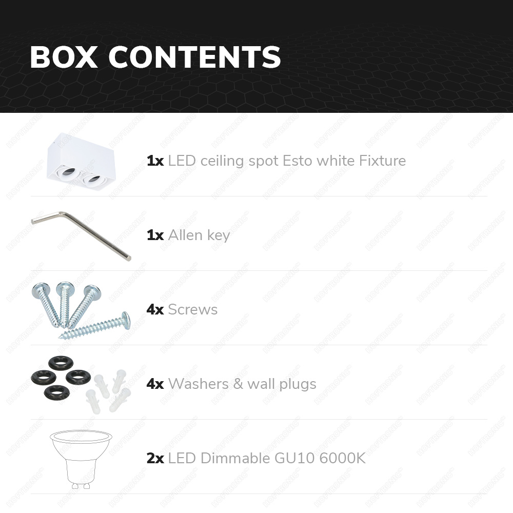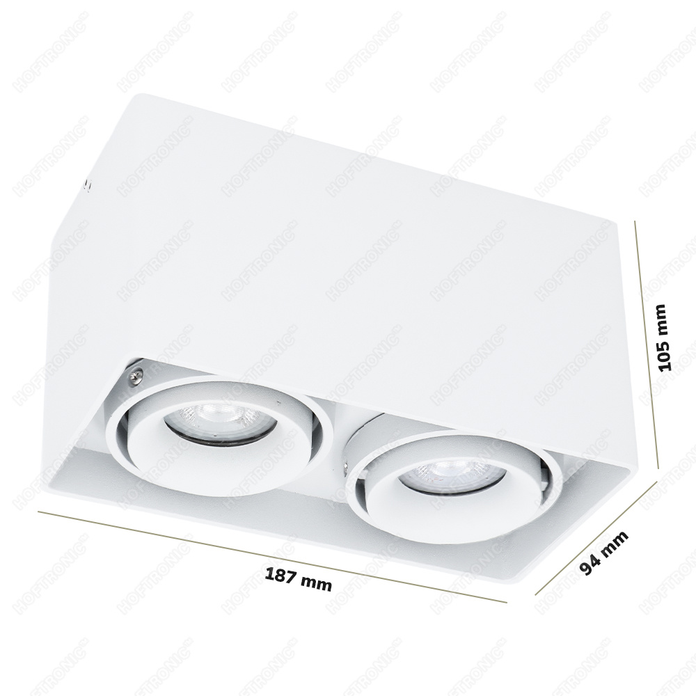 Deze Opbouwspot plafond Esto 2 Lichts heeft een hoogwaardige aluminium afwerking in de kenmerk wit. Dit armatuur is betrouwbaar voor binnengebruik door de IP20 waarde. Je kunt deze Opbouwspot plafond eenvoudig monteren op een plafond als inbouw niet eventueel is. Je kunt deze armatuur in een hal, toilet, woonkamer of slaapkamer ruimtes waar geen vochtigheid is.