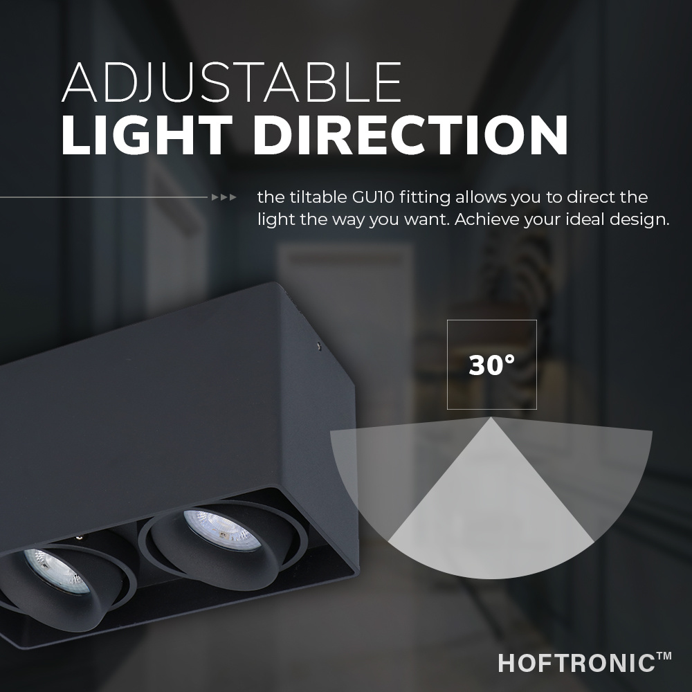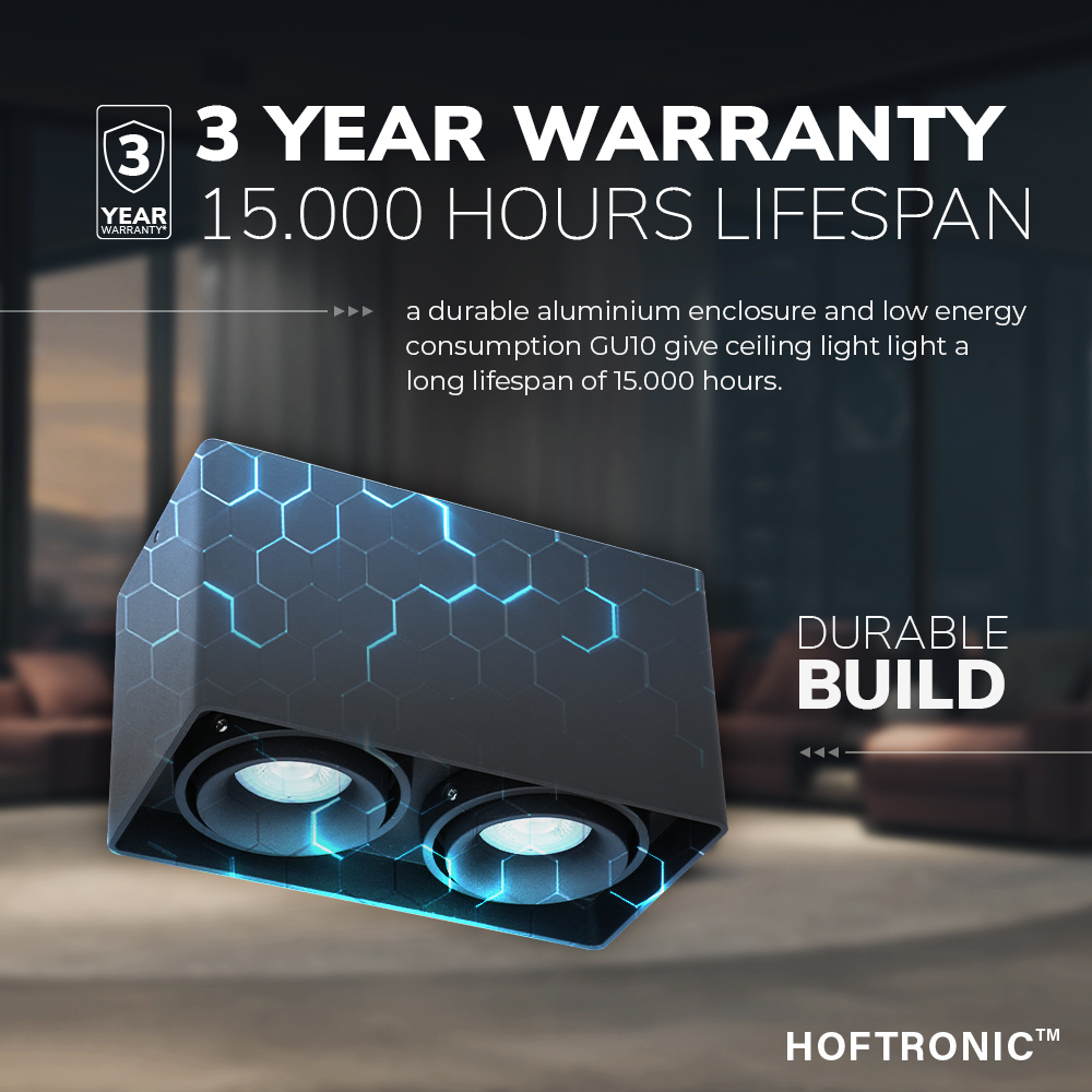De Esto wordt normaal geleverd met twee GU10 spots. Deze is simpelweg te omruilen en dat heeft twee voordelen. Ten eerste kun je na inkoop altijd nog switchen van lichttemperatuur. Zo maak je van een nuttige opbouwspot simpelweg sfeerverlichting en andersom. Ten tweede wordt de levensduur van de lamp verlengd, doordien je geen fonkelnieuwe opbouwspot hoeft aan te schaffen zodra de lichtbron het begeven heeft.