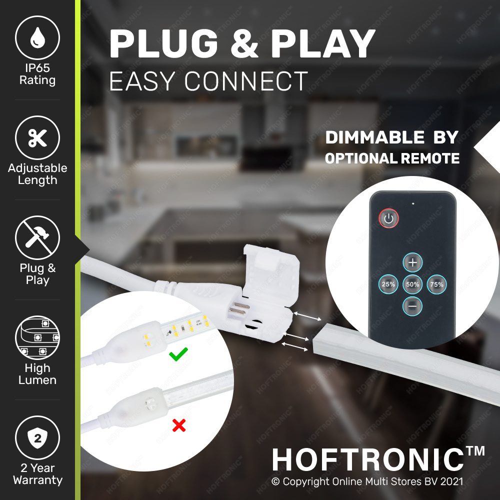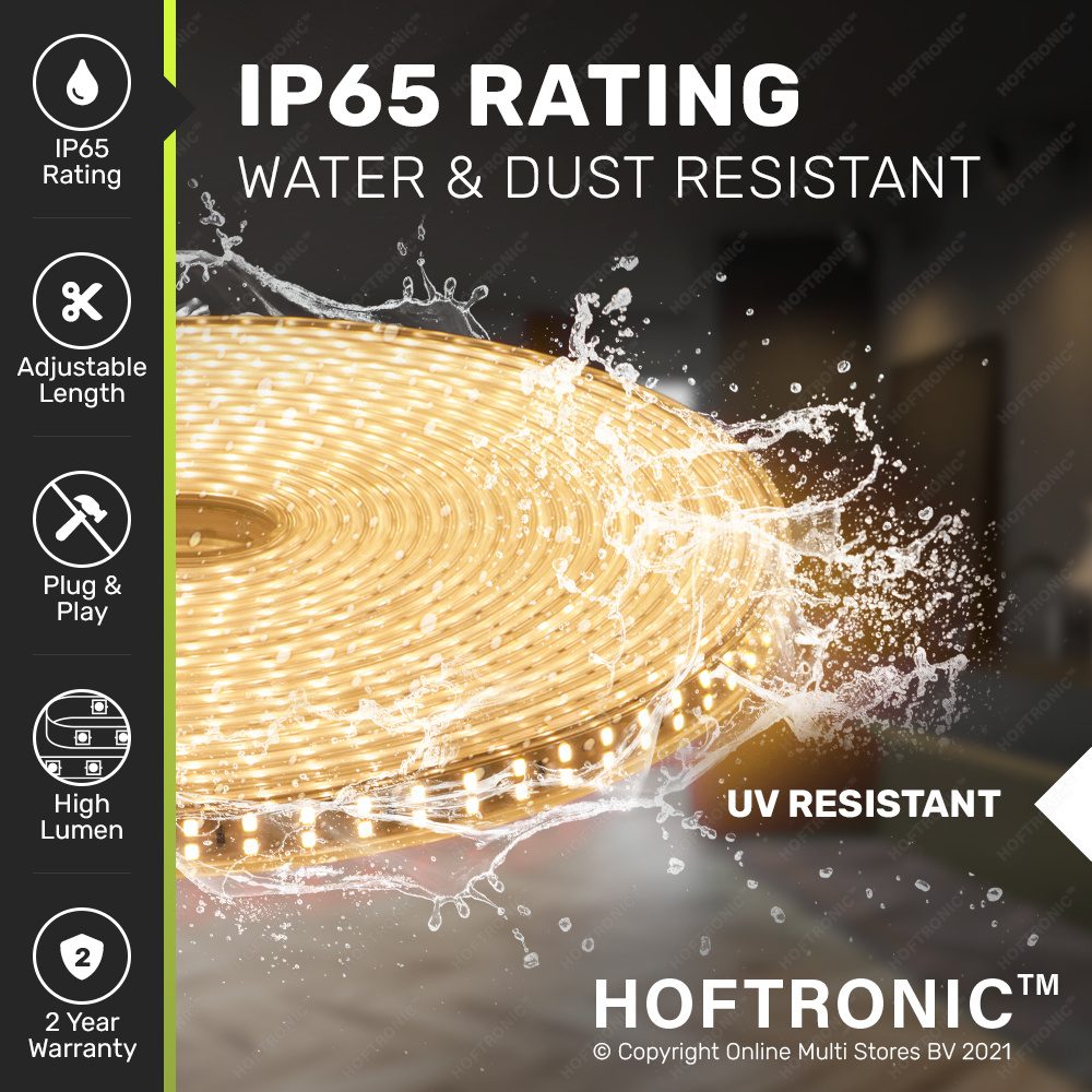 HOFTRONIC Dimbare LED Strip 10m – Lichtslang 3000K – 180 LEDs/m – IP65 – Plug & Play – SMD 2835 – Flex180 Series
