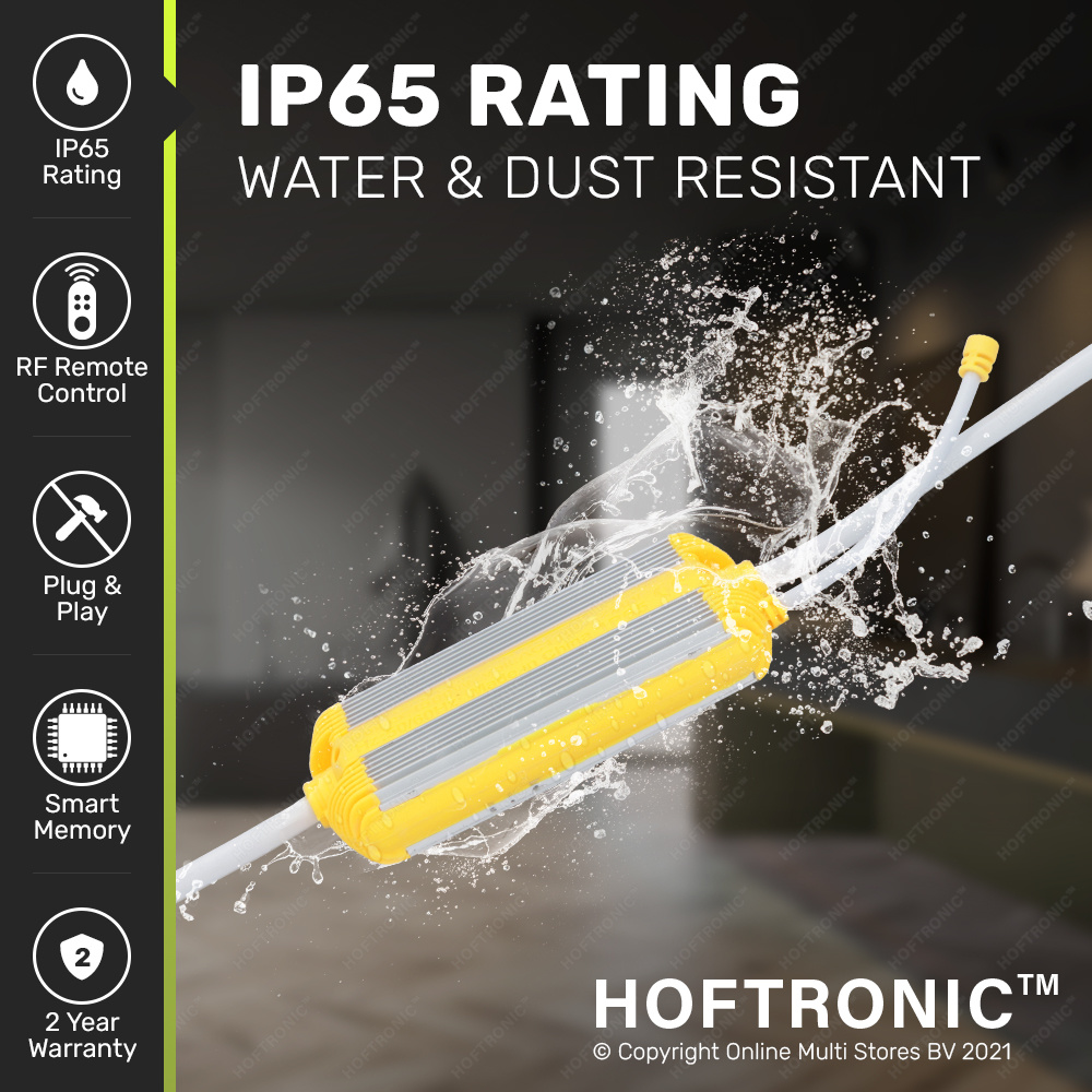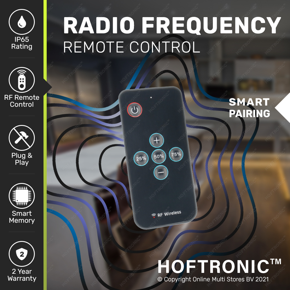 Met deze LED lichtslang dimmer kun je de éénkleurige LED lichtslangen op afstand aan en uit zetten en dimmen. Deze lichtslang dimmer set bestaat uit de dimmer en een compacte afstandsbediening. Het aansluiten van deze dimmer op de lichtslang is erg simpel doordien alle verbindingen Plug & Play zijn gefabriceerd. De dimmer werkt op radiofrequentie waardoor het bereik van de afstandsbediening tot maximaal 30 meter is. Hiernaast laat de LED lichtslang zich handzaam dimmen van 100% naar 10% lichtintensiteit, waardoor een gegarandeerde intieme ambiance ontstaat.