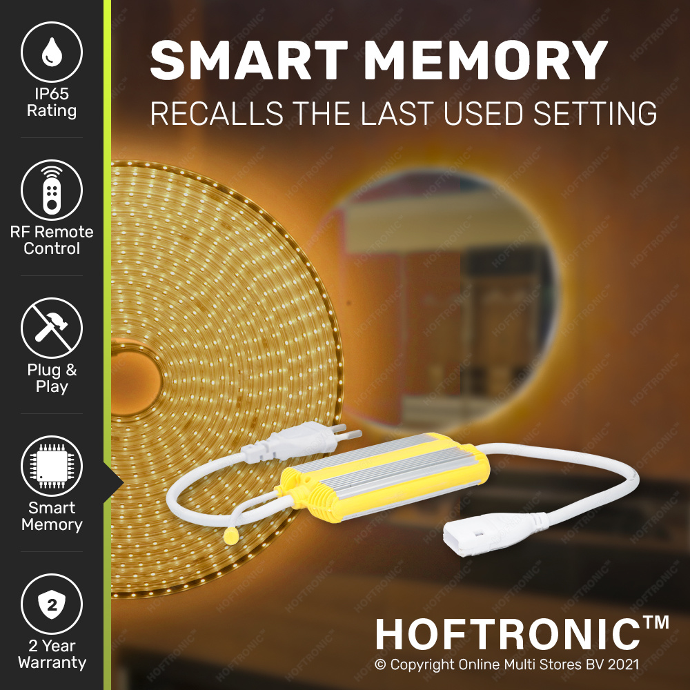 Dankzij de vernieuwde afstandsbediening weet je afgeschermd dat je de LED strip bestuurt, die jij wilt besturen. Door de unieke code koppeling reageert er maar 1 LED strip op de afstandsbediening tenzij jij, dankzij de fonkelnieuwe feature, meerdere LED strips combineert aan de afstandsbediening.