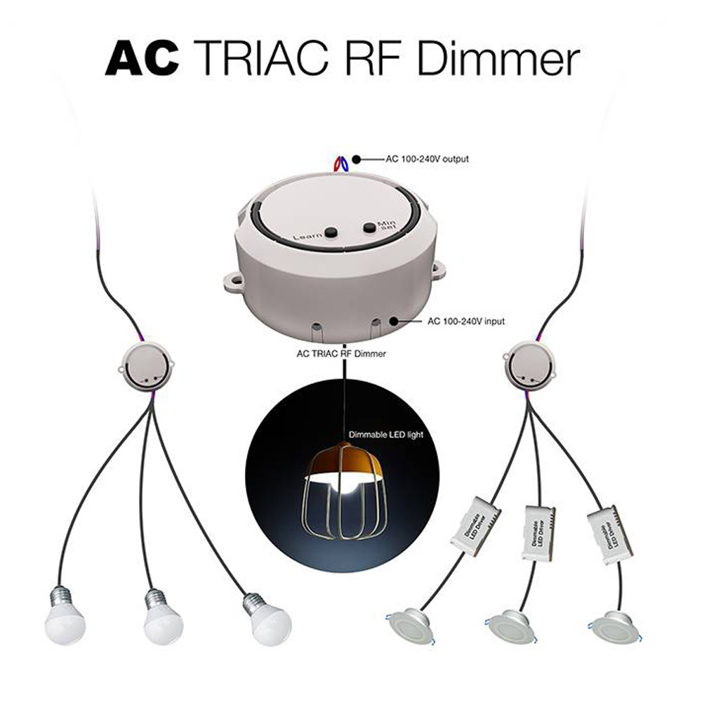 De LED dimmer is een innovatieve fase aansnijdende dimmer met een RF functie waarmee je de muurdimmer kunt koppelen en je verlichting kunt aansturen. De dimmer is verwerkelijkt met een forse ingangsspanning en een uitgangsspanning bereik van 100-240V AC, waarmee je dus heel voldoende uiteenlopende lampen kunt bedienen. De dimmer heeft één kanaal, je kunt hier dus 1 groep mee creëren. Het is daarentegen wel eventueel om met je verlichting menig groepen te maken en deze via dezelfde muurdimmer aan te sturen. Per groep installeer je dan een aparte LED dimmer. De dimmer heeft een maximaal kapitaal van 100 Watt, met een gemiddeld verbruik van 5 watt per GU10 spotje kun je dus tot 20 GU10 spots aansluiten op één dimmer! Deze draadloze dimmer heeft een innovatieve minimum helderheid instelling waarmee je een minimale helderheid kunt instellen zodat je optimaal tot het ingestelde minimum kunt terug dimmen.