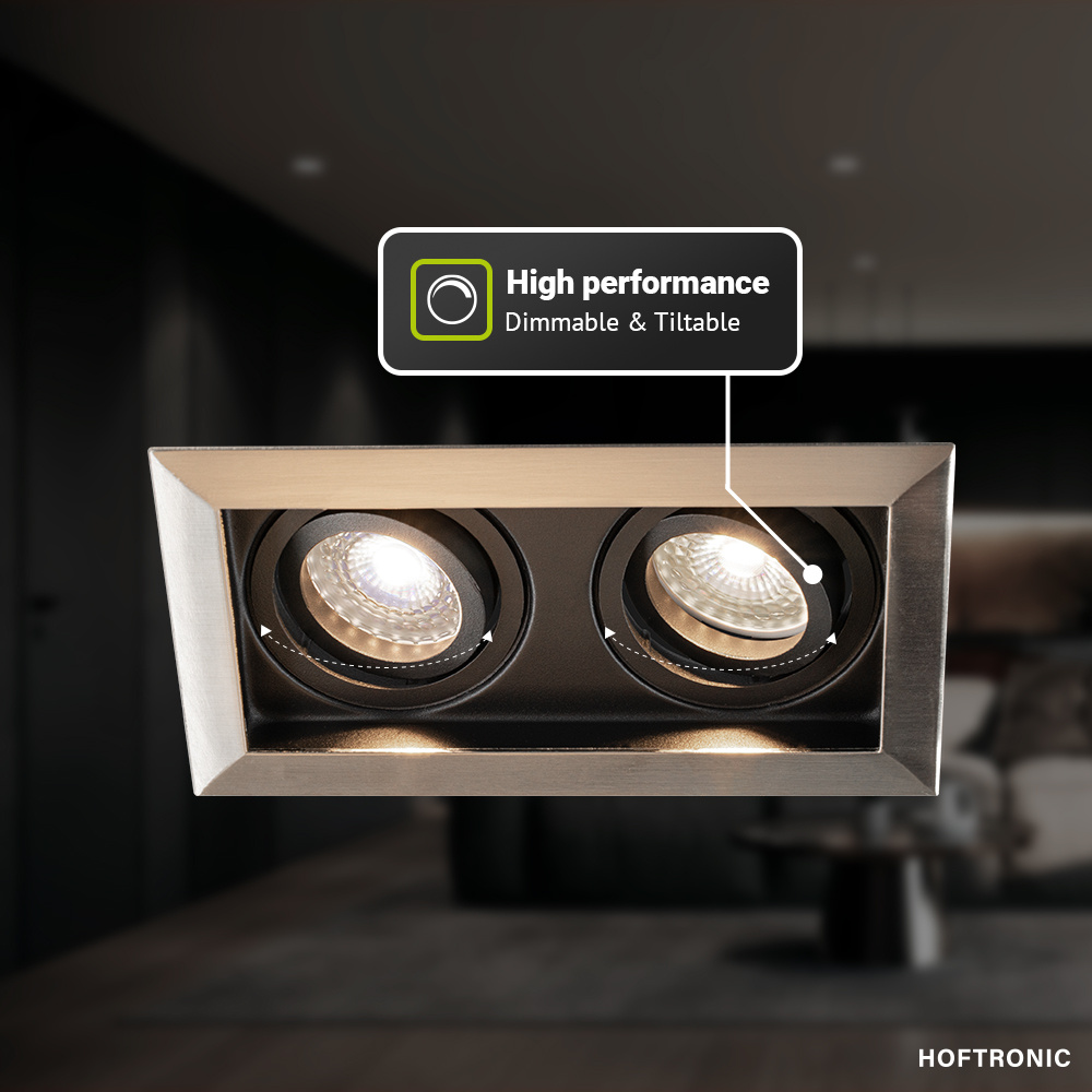 De Durham Dubbel RVS is een inbouwspot met 2 GU10 fittingen. De armatuur is bekwaam als inbouwspot voor je plafondverlichting. Door de handige GU10 fitting draai je moeiteloos en eerdaags elke lichtkleur GU10 lamp in je inbouwspot. Het armatuur is gefabriceerd van een grondig en stevig onderhoudsvrij aluminium.