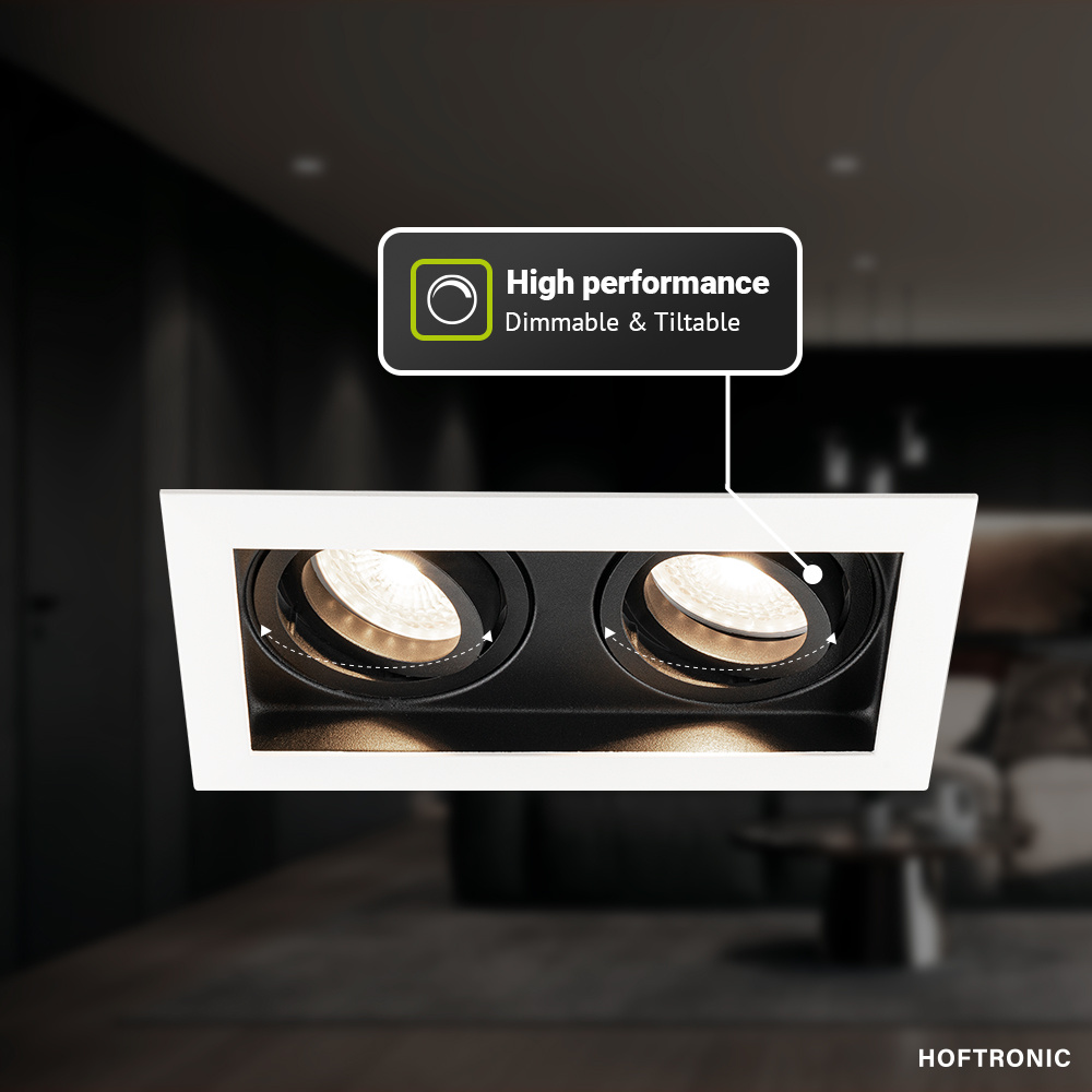 HOFTRONIC Durham Inbouwspot Dubbel Wit – GU10 5 Watt 400 lumen – 4000K Neutraal wit – Kantelbaar – IP20 – Rechthoek