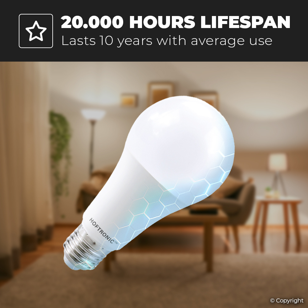Deze E27 LED lamp is van het merk HOFTRONIC. HOFTRONIC is zowel fabrikant als verkoper van LED verlichting. Hierdoor profiteer je van de scherpste prijs, de hoogste klasse en de meest gewaardeerde garantievoorwaarden. Op deze E27 LED lamp ontvang je dan ook 2 jaar garantie. Defecten in huis deze 2 jaar worden volkomen kosteloos afwisselen.