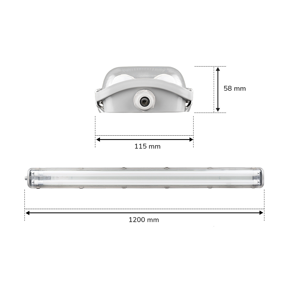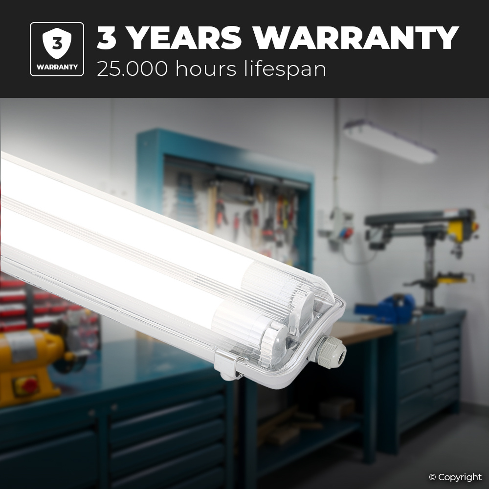 Of het nu gaat om een vochtige of droge ruimte of juist een koude of warme ruimte dit LED TL armatuur kan altijd. Dit komt door zijn hoge IP65 beschermingsklasse. Deze protectie zorgt ervoor dat het armatuur waterdicht en stofdicht is. De bedrijfstemperatuur van -35 t/m 50 graden zorgt ervoor dat de LED TL lamp ook in zeer koude ruimtes toegepast kan worden. Denk hierbij aan koelcellen of vriezers.