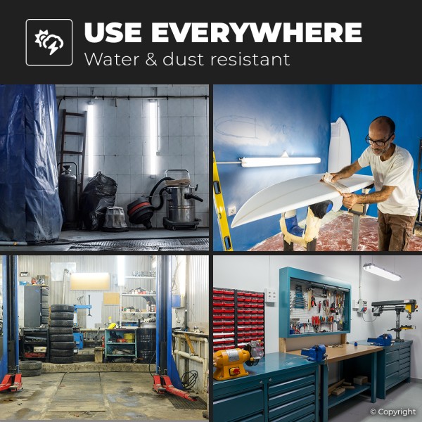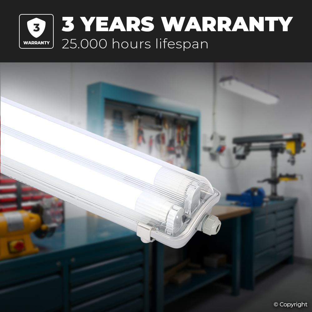 Of het nu gaat om een vochtige of droge ruimte of betrouwbaar een koude of warme ruimte dit LED TL armatuur kan altijd. Dit komt door zijn hoge IP65 beschermingsklasse. Deze bescherming zorgt ervoor dat het armatuur waterdicht en stofdicht is. De bedrijfstemperatuur van -35 t/m 50 graden zorgt ervoor dat de LED TL lamp ook in zeer koude vertrekken toegepast kan worden. Denk hierbij aan koelcellen of vriezers.