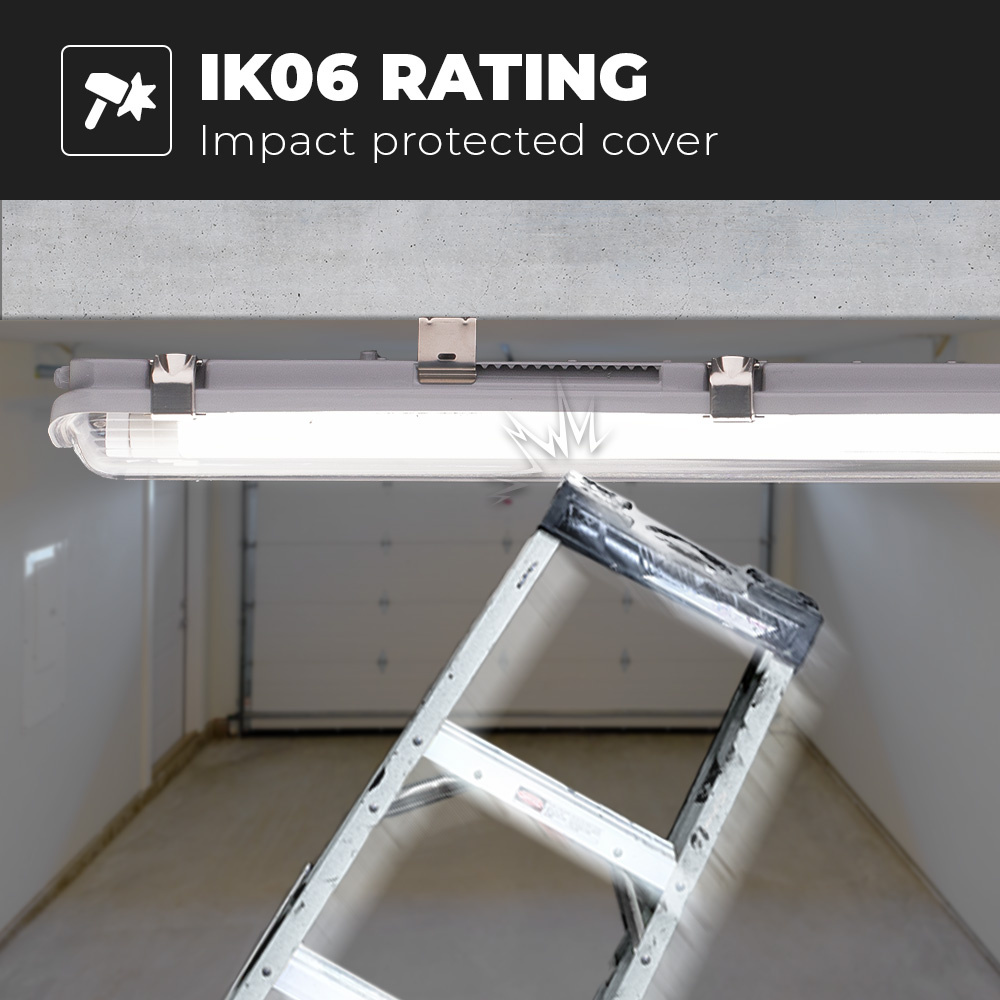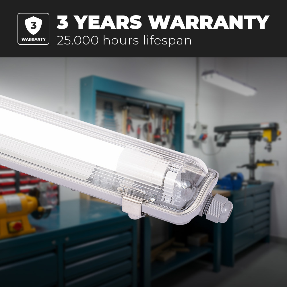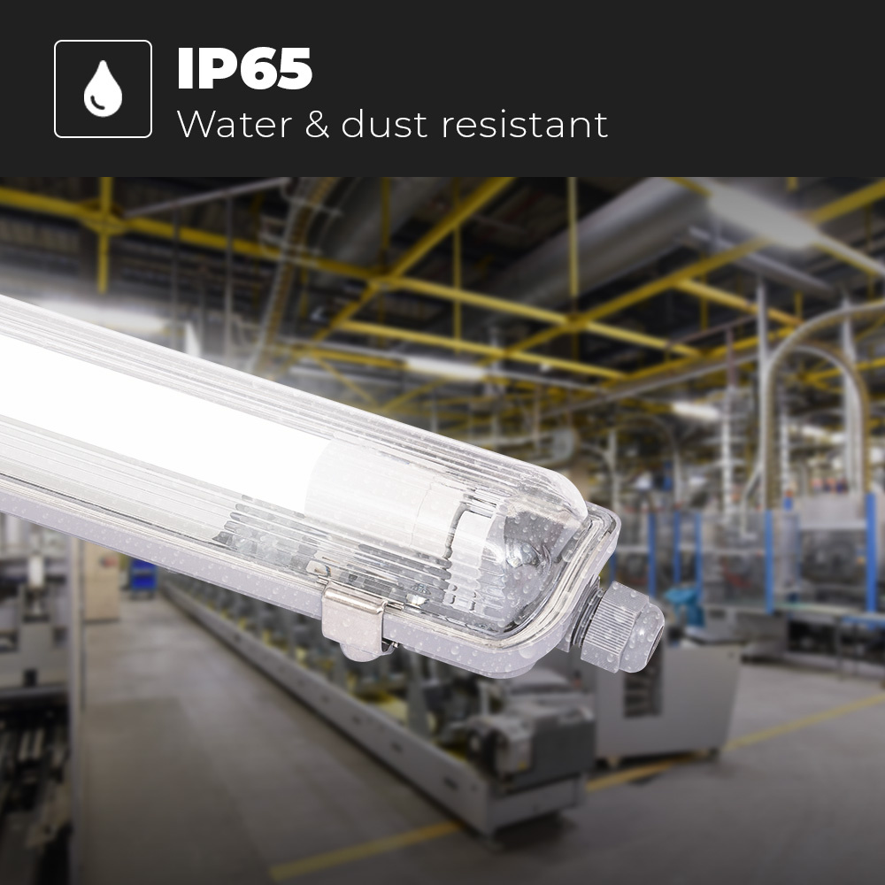 Of het nu gaat om een vochtige of droge ruimte of fijn een koude of warme ruimte dit LED TL armatuur kan aanhoudend. Dit komt door zijn hoge IP65 beschermingsklasse. Deze bescherming zorgt ervoor dat het armatuur waterdicht en stofdicht is. De bedrijfstemperatuur van -25 t/m 50 graden zorgt ervoor dat de LED TL lamp mede in zeer koude vertrekken toegepast kan worden. Denk hierbij aan koelcellen of vriezers.