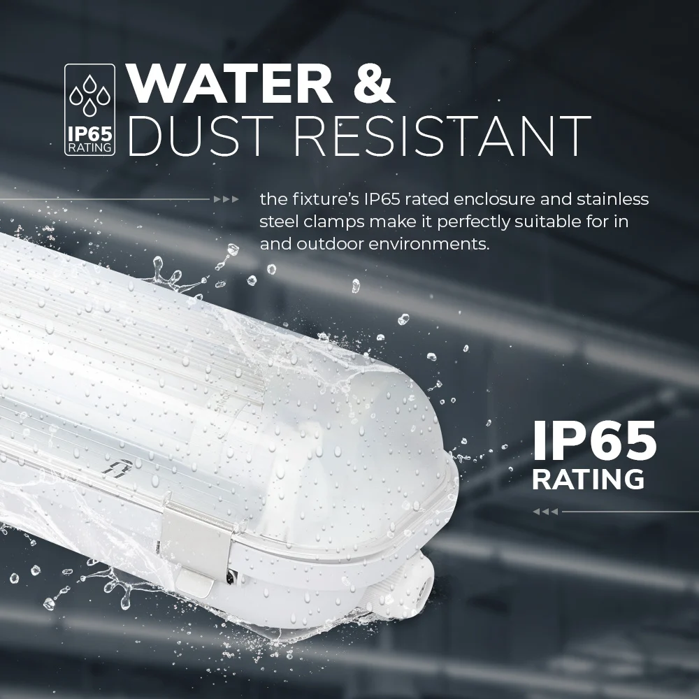 De IP65 beschermingsklasse, groot bereik in bedrijfstemperatuur en toepassing van ABS+Polycarbonaat materialen waken ervoor dat de LED TL armaturen fijn zijn voor alle toepassingen.