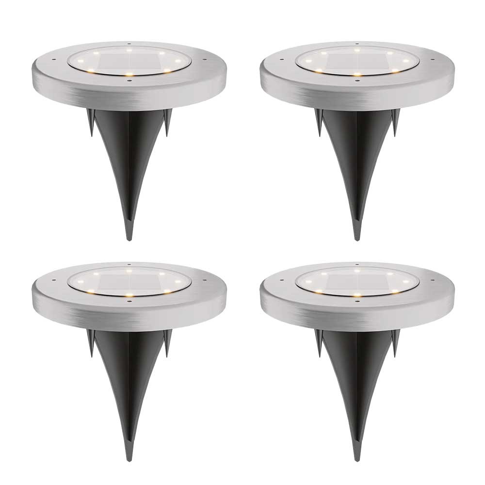 Ellis 4x Solar grondspots – 8 LEDS – 3000K warm wit licht – IP65 waterdicht – RVS kleurig