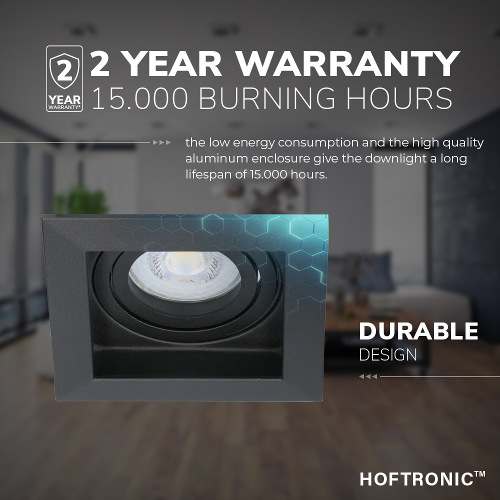 De Fresno inbouwspot met een 2700K Warm witte GU10 spot is ideaal bekwaam als intieme plafondverlichting van je binnenruimtes bijv. je woonkamer, keuken of slaapkamer. Met een lichtopbrengst van 400 Lumen en een gunstig verbruik van 5 Watt zijn deze plafondspots zeer energiezuinig en is de GU10 spot ook optioneel dimbaar waardoor je altijd de lichtintensiteit kunt besluiten. Het armatuur is ontwikkeld van een grondig onderhoudsvrij polycarbonaat én de spot heeft maar liefst 15.000 branduren waardoor je jarenlang kunt genieten van je inbouwspots.