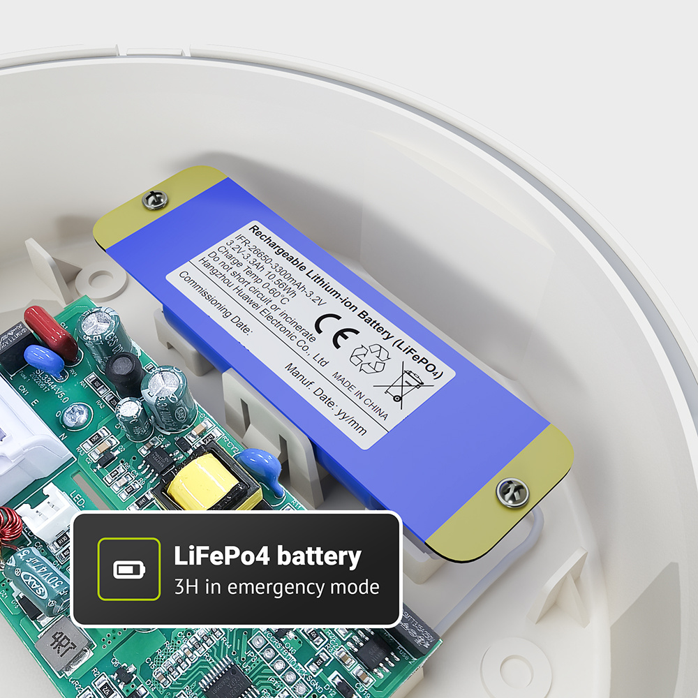 Als de stroom uitvalt en de verlichting niet meer werkt, hoef je je door de hulp van deze noodverlichting geen zorgen te maken. De Fuga is uitgerust met een goede LiFePO4 3.2V 3300mAh back-up batterij die tot wel 3 uur kan branden. Deze batterij is thuis 24 uren volledig opgeladen. De noodverlichting schakelt automatisch in wanneer de stroom uitvalt. In gevaarlijke situaties zonder stroom zal de noodverlichting op de batterij blijven werken.