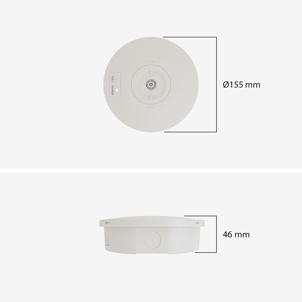 De Fuga is een professionele ronde opbouwspot in de kleur wit die dient als anti-paniekverlichting wanneer de stroom uitvalt bij een calamiteit. Deze opbouwspots plaats je in ruimtes die aan een vluchtroute liggen, teneinde mede de weg naar de vluchtroute lekker te vinden is. Deze LED-noodverlichting-opbouwspots zijn dan ook bruikbaar voor o.a. winkels, bedrijven, magazijnen en werkplaatsen. Dankzij de IP65-beschermingsklasse is de opbouwspot waterdicht en is hij dus ook zeer geschikt voor zeer vochtige ruimtes. De LED-lichtbron heeft een hoge lichtopbrengst van 270 lumen en een daglicht witte lichtkleur van 6500K. Hierdoor is de noodverlichting maximaal zichtbaar. Ondanks dat heeft de opbouwspot een verbruik van slechts 1,6 watt. Deze Fuga noodverlichting opbouwspot is ook leverbaar in het zwart, met een vierkante vorm en met autotestfunctie.