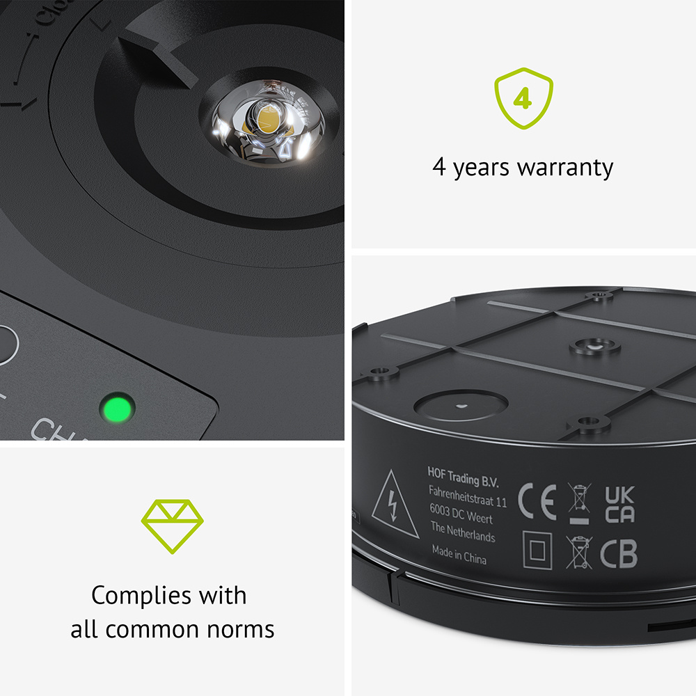 Dankzij deze hoogwaardig hoogwaardige LiFePO4 batterij heeft de Fuga een lange levensduur en weinig onderhoud. Daarnaast verbruikt de lamp slechts 1,6 watt waardoor hij zeer energiezuinig is en dus mede langer meegaat. De behuizing van de Fuga is gefabriceerd van sterk polycarbonaat. Tot slot heeft de lamp > 102000 branduren, waardoor je jarenlang geen omkijken hebt naar deze lamp. Op deze noodverlichting ontvang je 4 jaar waarborg (2 jaar op de batterij).