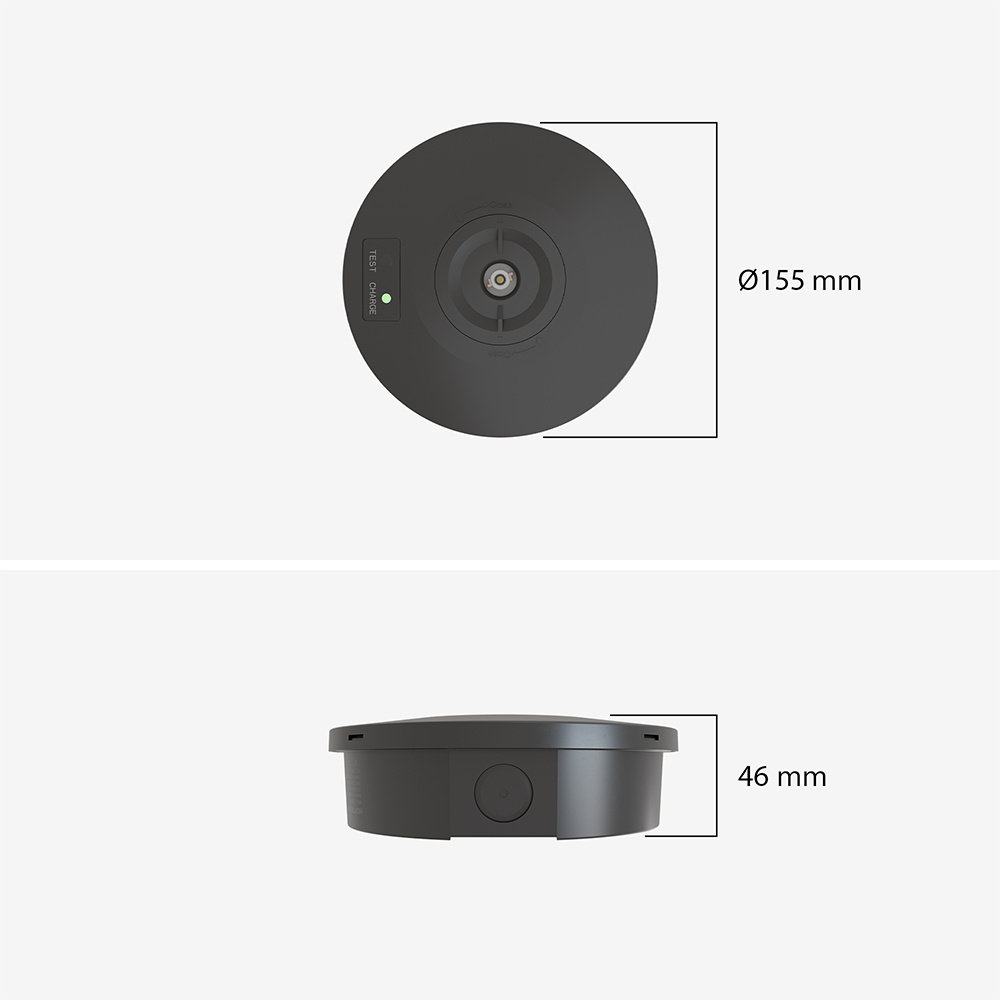 De Fuga opbouwspot heeft een testknop waarmee je handmatig kunt controleren of de noodverlichting automatisch inschakelt bij stroomuitval. Het is verplicht om maandelijks handmatig een functietest en jaarlijks een duurtest van drie uur uit te voeren.