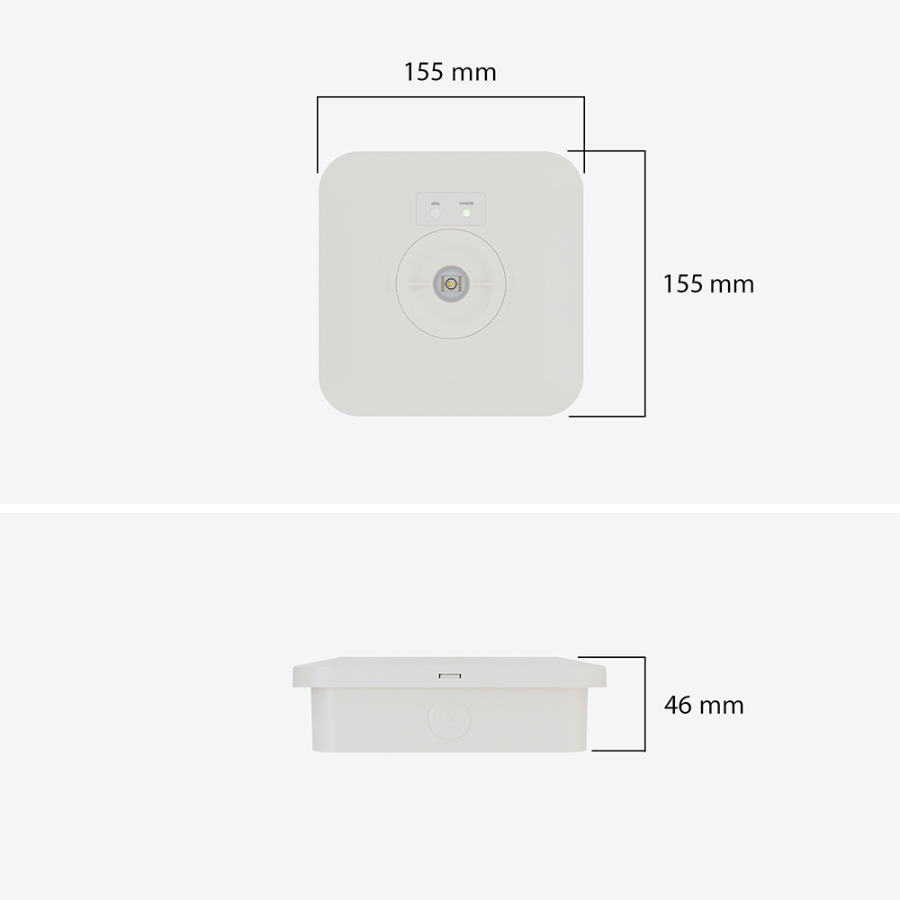 De Fuga is een professionele vierkante opbouwspot in de kenmerk wit die dient als anti-paniekverlichting wanneer de stroom uitvalt bij een calamiteit. Deze opbouwspots plaats je in plekken die aan een vluchtroute liggen, teneinde ook de weg naar de vluchtroute maximaal te vinden is. Deze LED-noodverlichting-opbouwspots zijn dan ook bekwaam voor o.a. shops, bedrijven, magazijnen en werkplaatsen. Dankzij de IP65-beschermingsklasse is de opbouwspot waterdicht en is hij dus ook zeer goed voor zeer vochtige plekken. De LED-lichtbron heeft een hoge lichtopbrengst van 280 lumen en een daglicht witte lichtkleur van 6500K. Hierdoor is de noodverlichting juist merkbaar. Ondanks dat heeft de opbouwspot een verbruik van slechts 1,6 watt. Deze Fuga noodverlichting opbouwspot is ook leverbaar in het zwart, met een ronde vorm en een autotestfunctie.