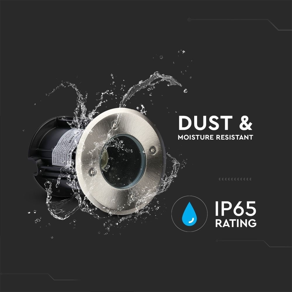 Deze grondspot is geproduceerd in duurzaam onderhoudsarm geborsteld RVS. De grondspot is voorzien van een GU10 fitting. Ideaal voor het verlichting van planten, bomen, terras, oprit en binnenplaatsen. Deze grondspot is van zéér behoorlijke klasse en is zelfs bekwaam om in beloopbare gebieden te worden geplaatst en heeft maar liefst een IP65 beschermingsklasse waarmee deze grondspot waterdicht is (niet goed voor beneden water!).