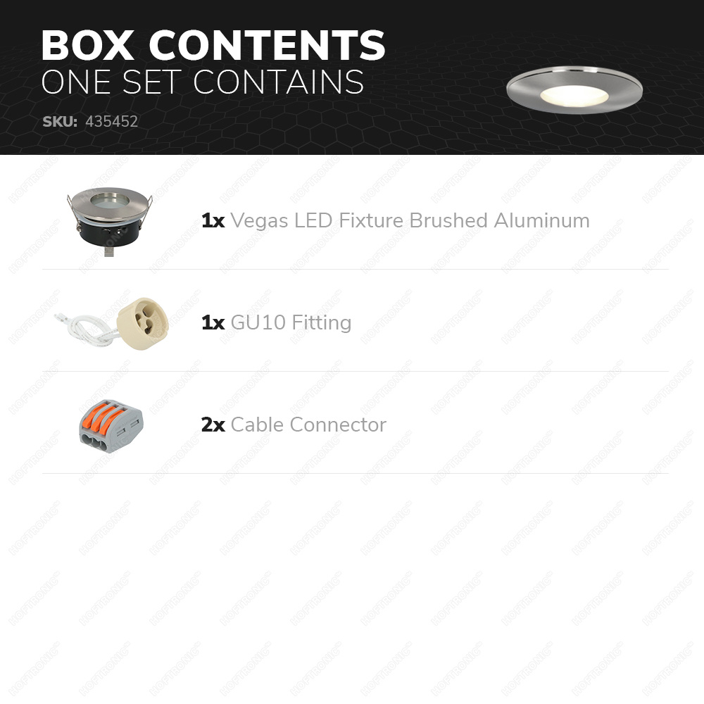 • IP44 voor droge plekken: De Vegas inbouwspots beschikken over een IP44 beschermingsklasse. Dit maakt de inbouwspots zeer bruikbaar voor de slaapkamer, woonkamer, zolder en andere droge vertrekken